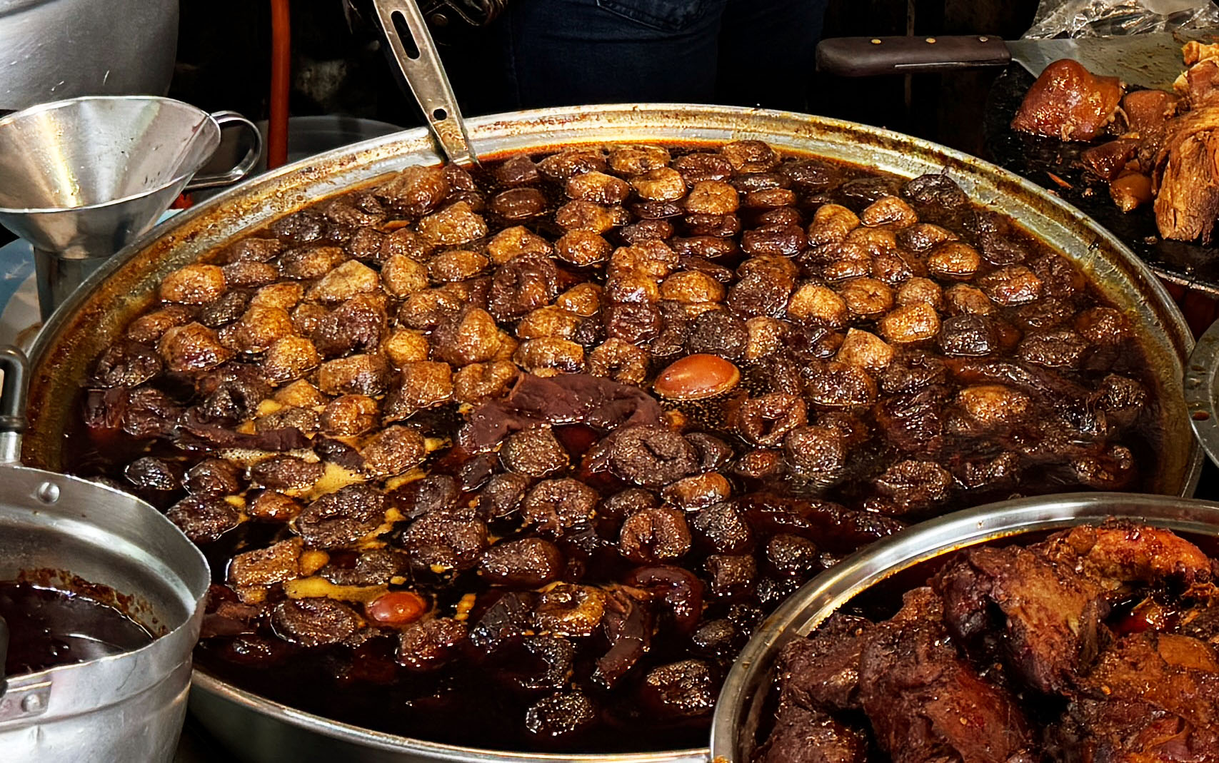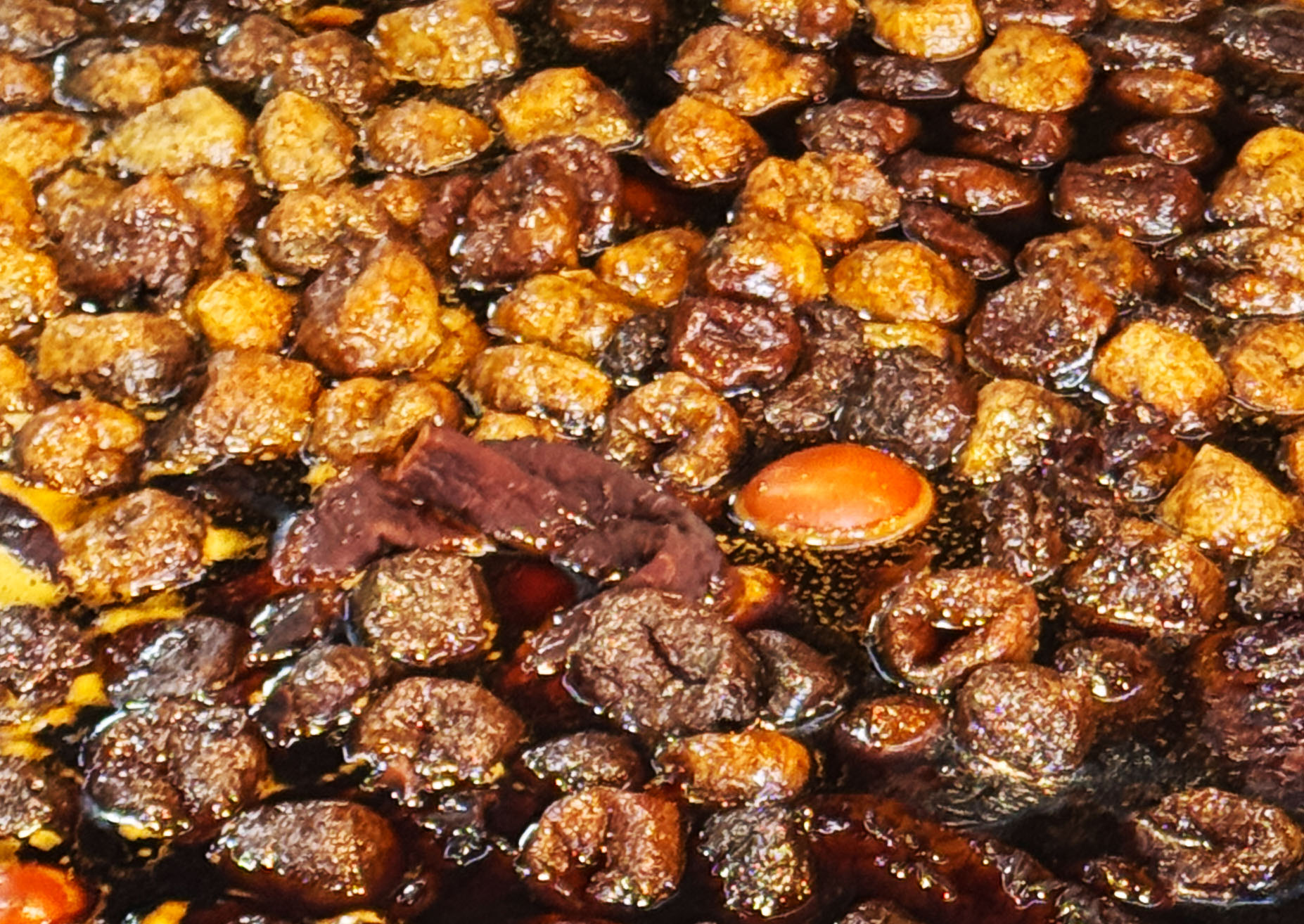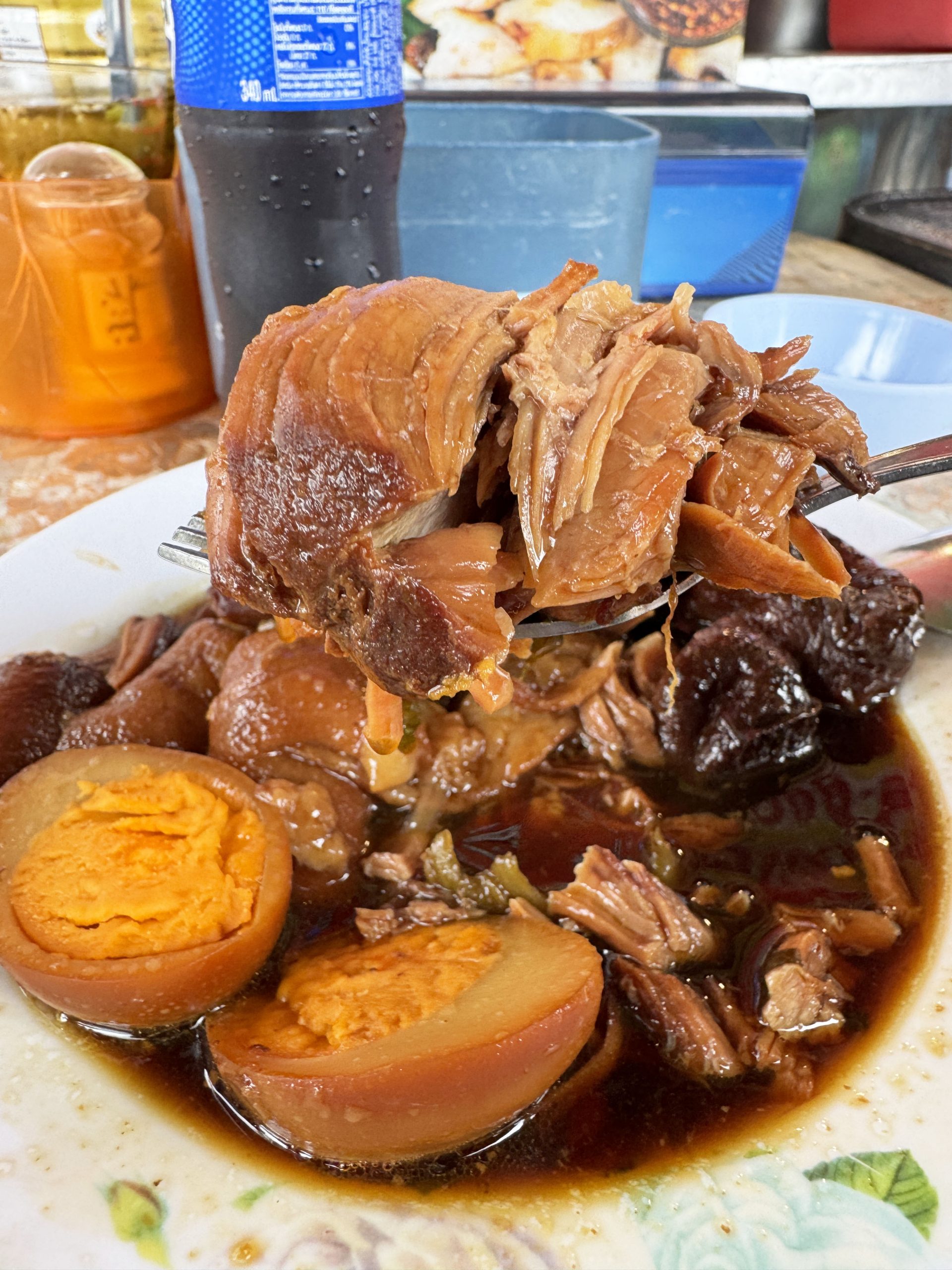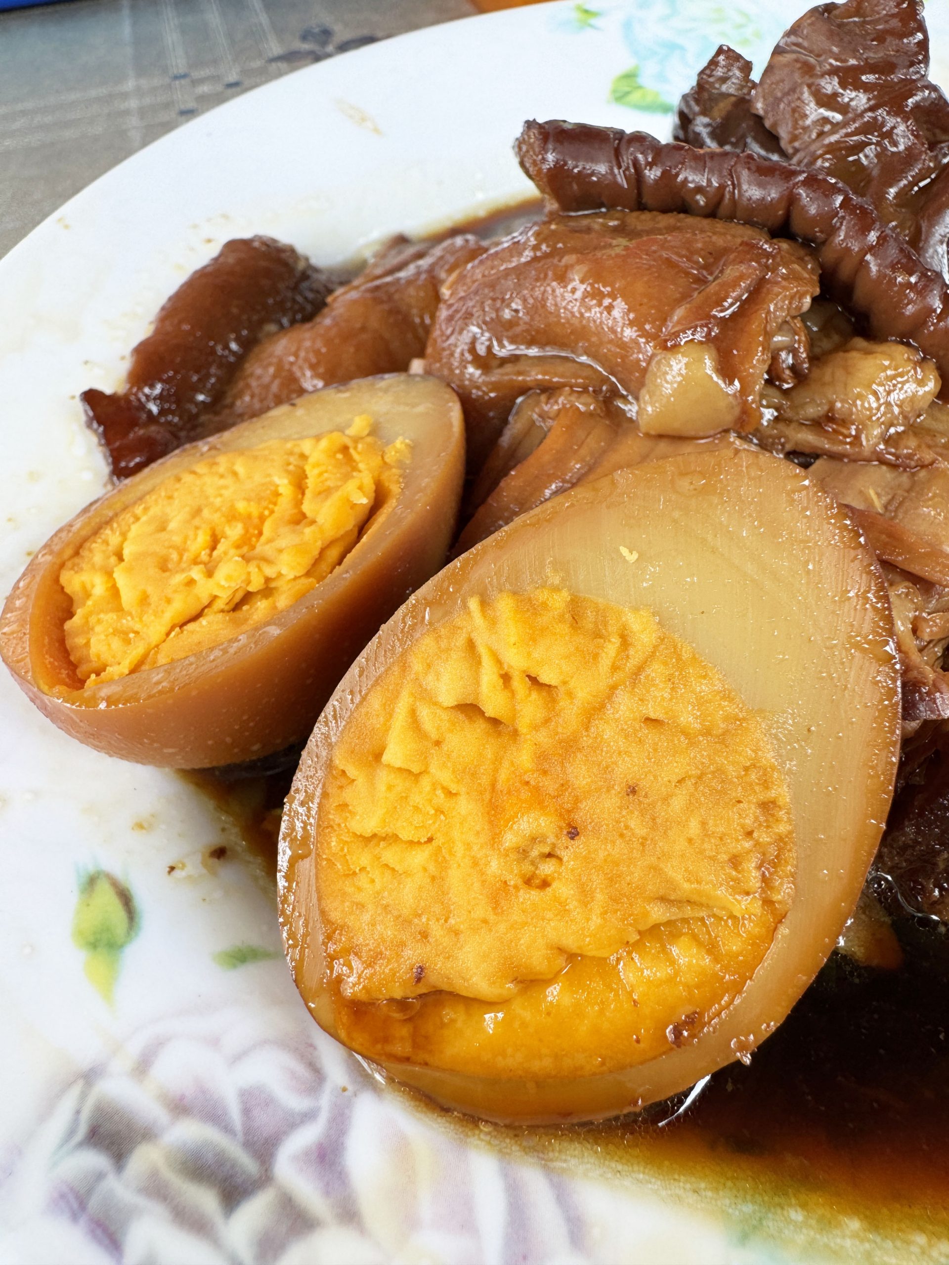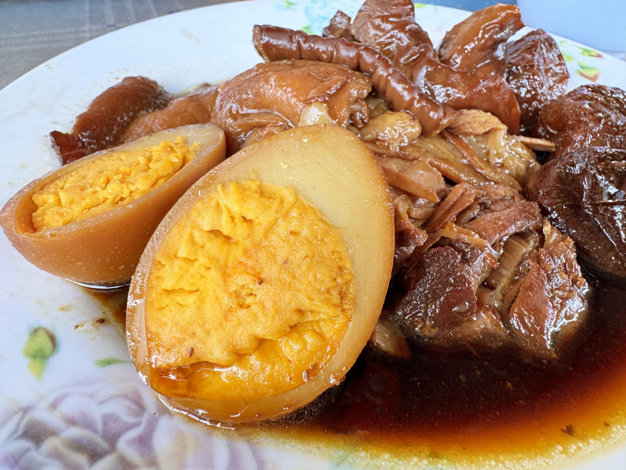一般的なカームーは、豚を徹底的に煮込んでいるため、肉がトロトロになっています。チェープアイのカームーは、豚のあらゆる部位が含まれていて、トロトロな部位、ほど良く柔らかい部位、ホロホロと砕ける部位、そしてキュキユッとはごたえのある部位など、食感が退屈しません。