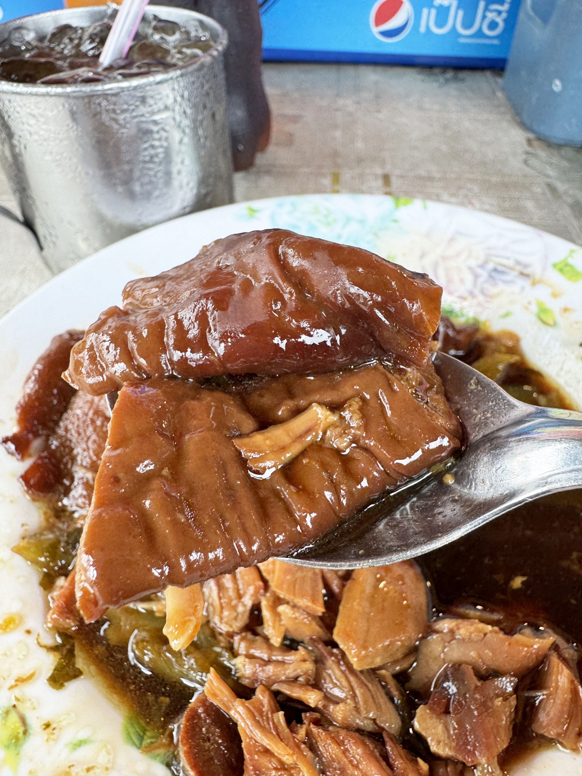 基本的にバンコクのカームーはどこで食べても平均的なレベルを保っているのですが、チェープアイのカームーは年季が違うし、旨味濃度が違うし、甘味濃度が違うし、醤油濃度が違うし、とにかく全体的に濃いです。