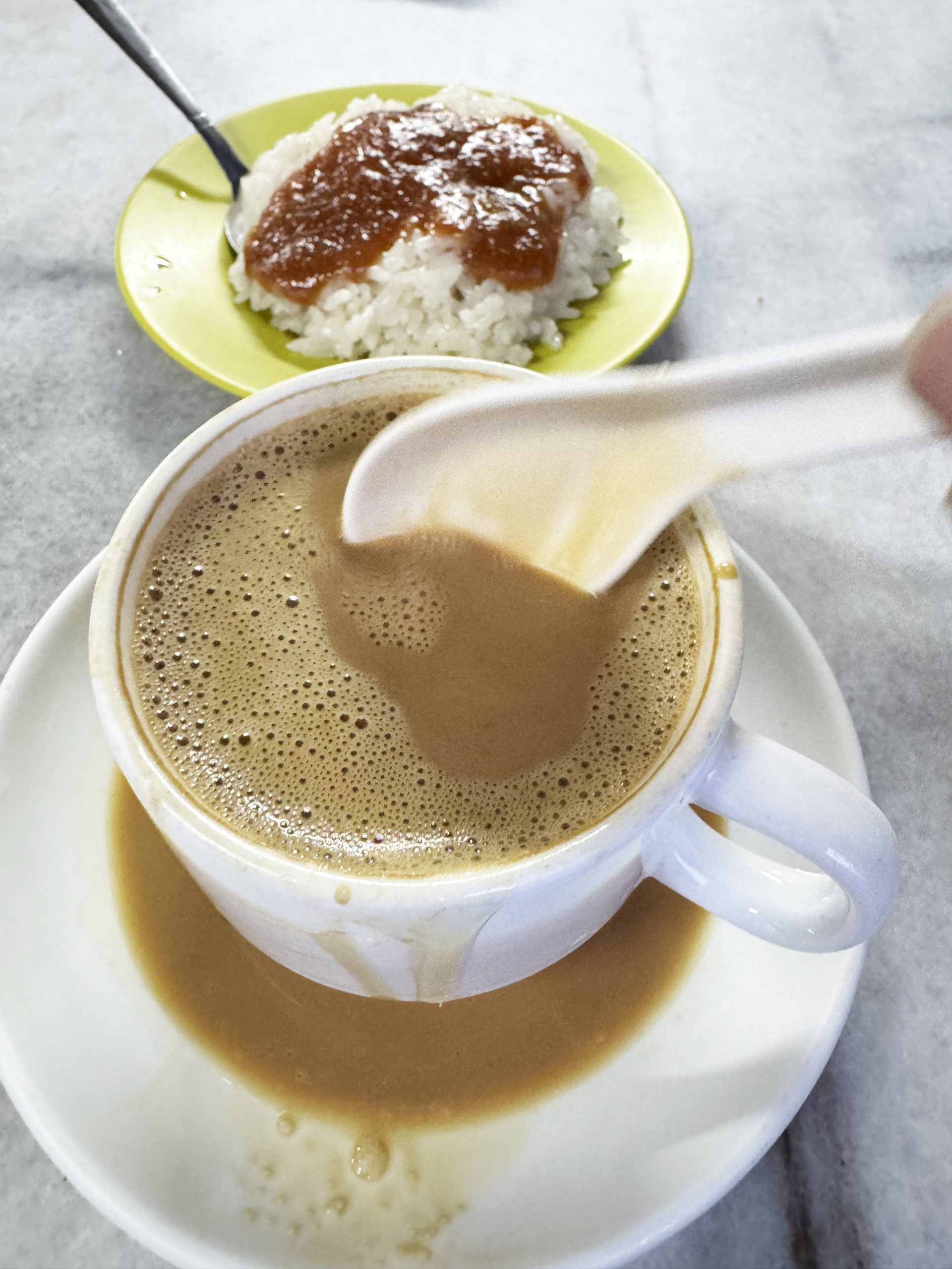 さっそくイポー・ホワイトコーヒーとジャムライスをオーダー。目の前にやってきたジャムライスは、確かに、ジャムライスでした。どこからどう見てもジャムライス。徹底的にジャムライス。右から見ても、左から見ても、ジャムライス。ジャムとライスです。