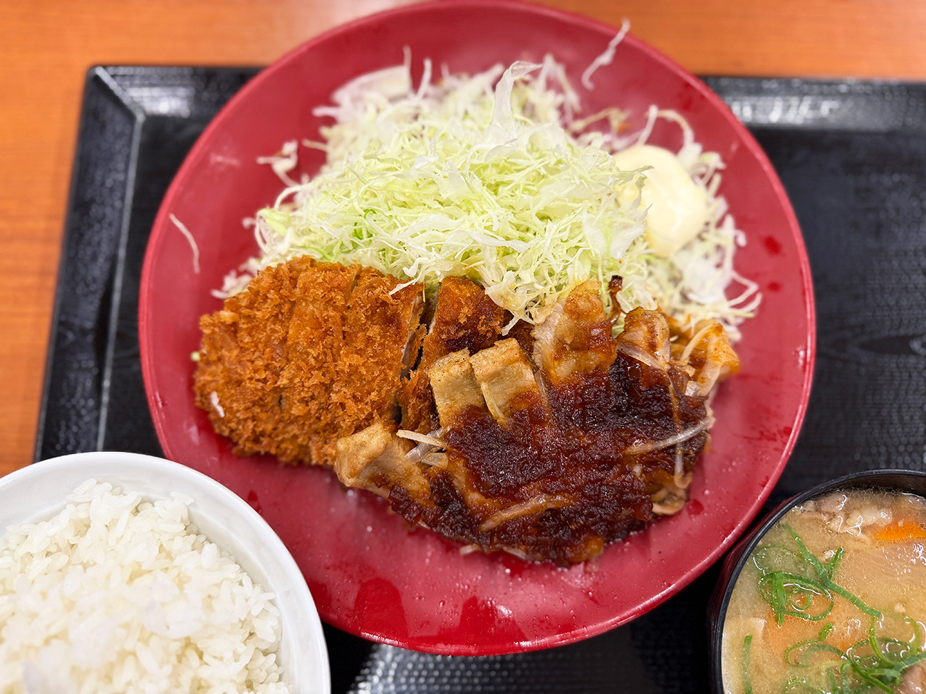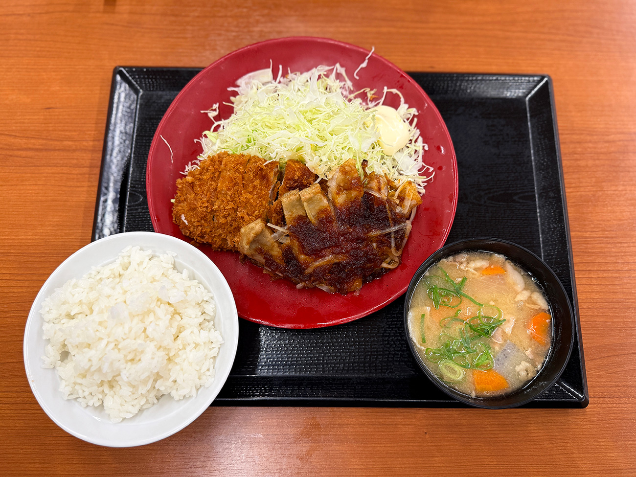 しかもこの日は豚汁と一緒にロースカツを食べるつもりでいたのですが、トンテキとロースカツやチキンカツを組み合わせたメニューまであるじゃあないですか!