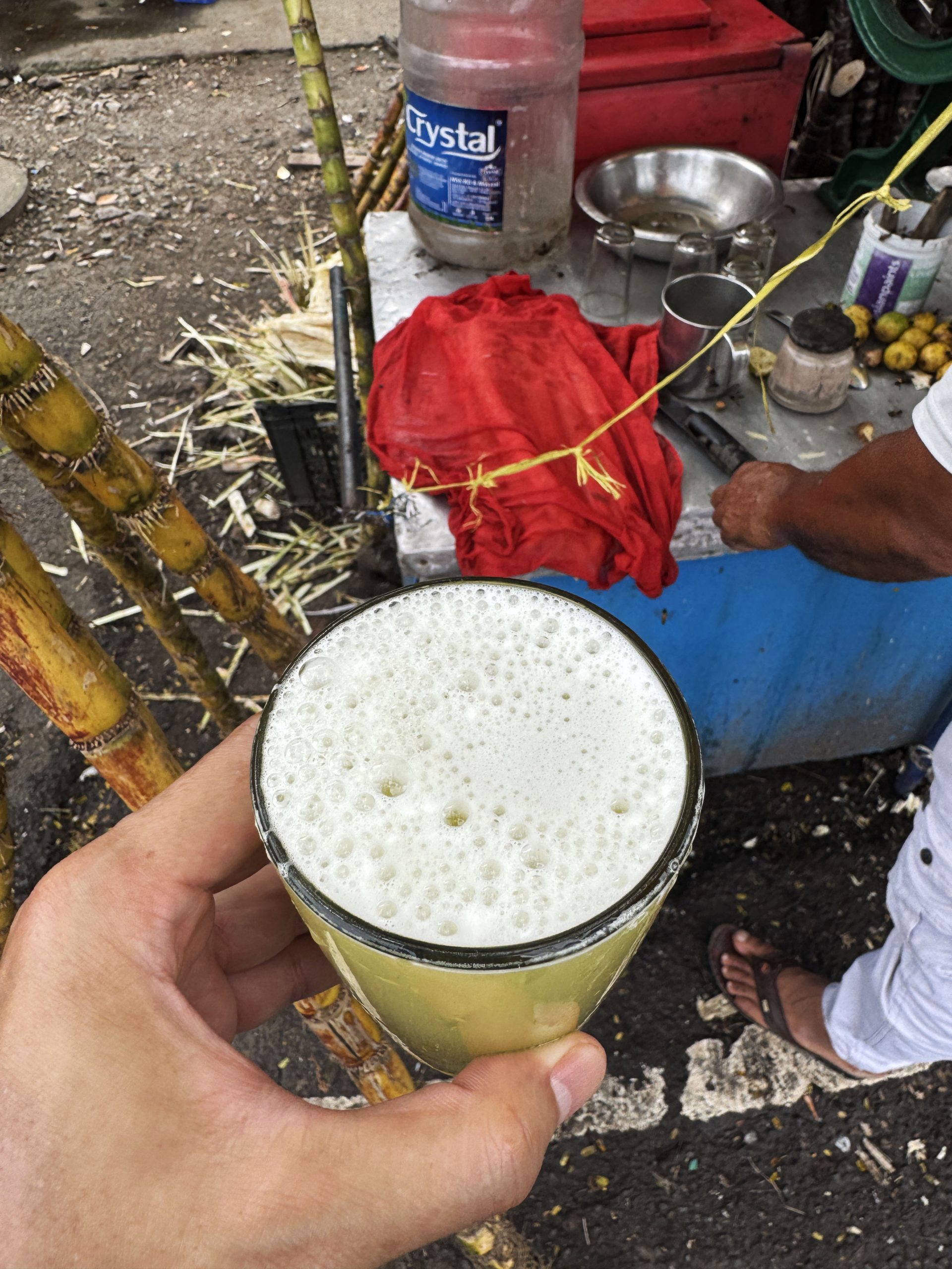さっそく飲んでみたが、実に良い。サトウキビの甘味が程よい濃さで雑味がない。サトウキビジュースは大味であることが多いのだが、濃いのに後味が爽やか。おそらく果汁の比率が良いからだろう。これ、灼熱のインドで疲れたときに飲むジュースとして最適。