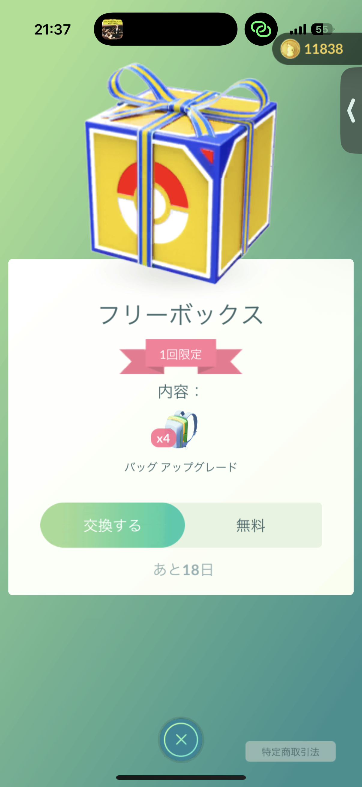 ▲「交換する」で、バッグアップグレード4回分を受け取れます。