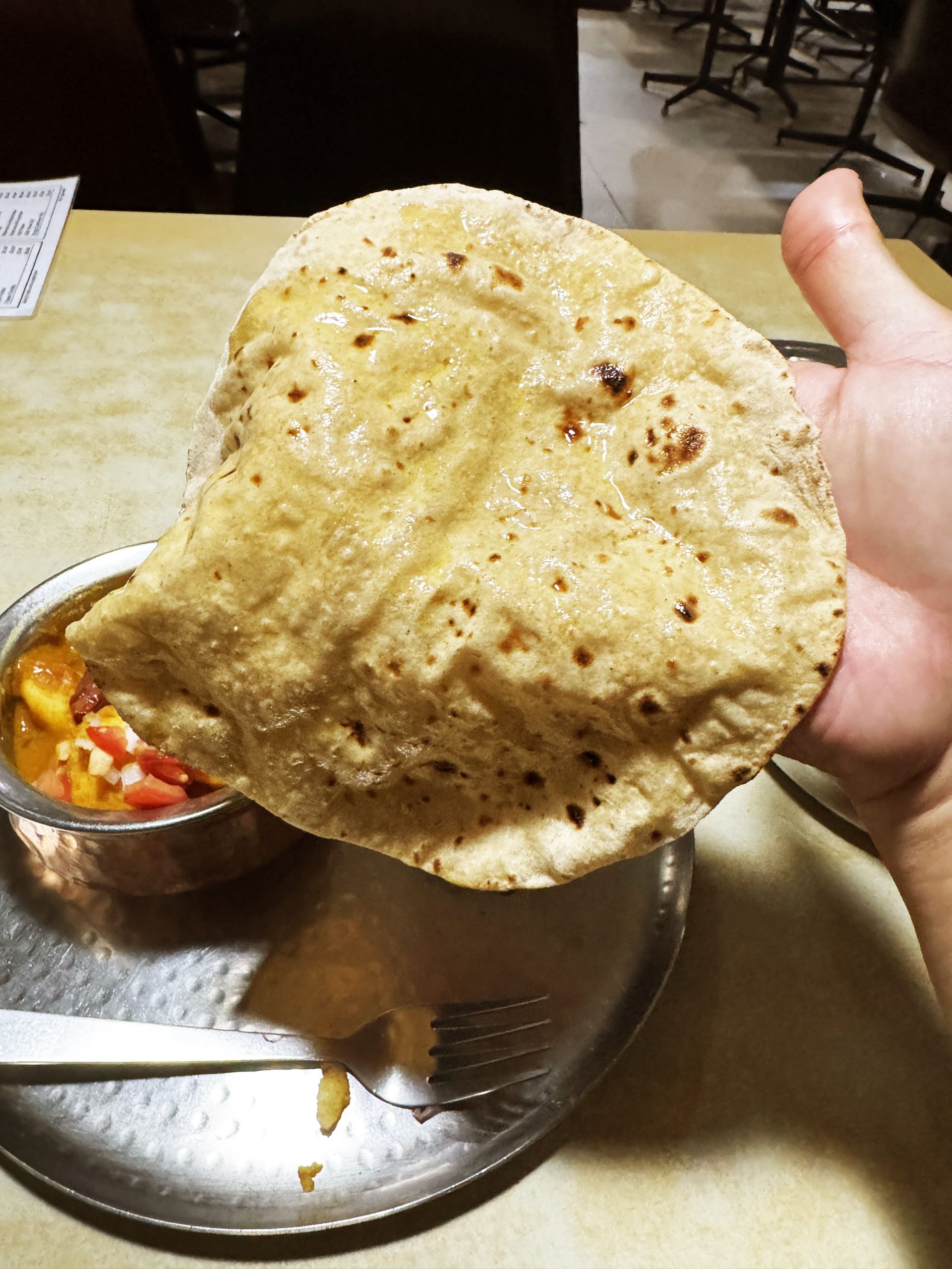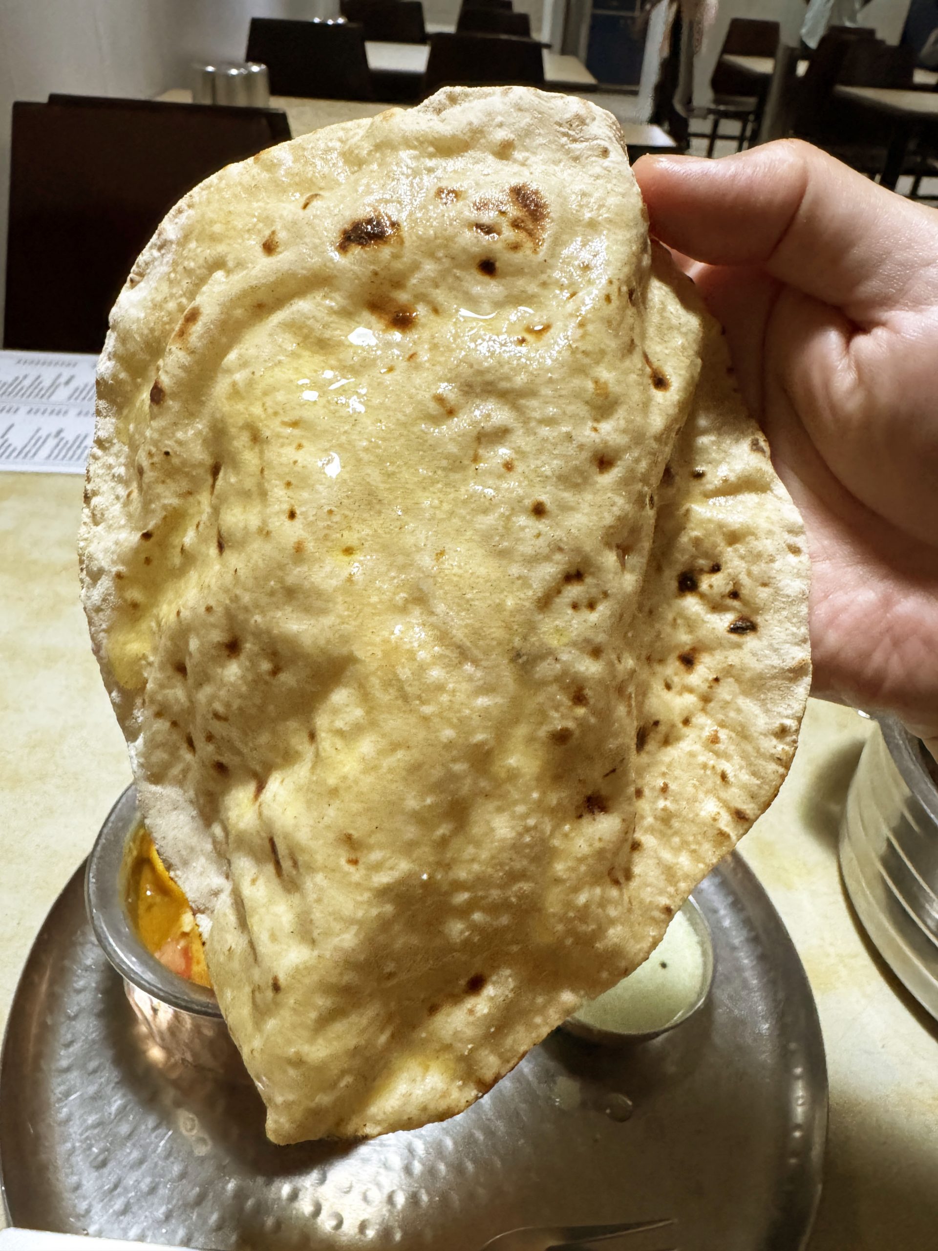 話がそれましたが、この店ではチャパティにバターを塗った「バターチャパティ」を食べることができます。なんだってぇーッ!? バターチャパティ!?