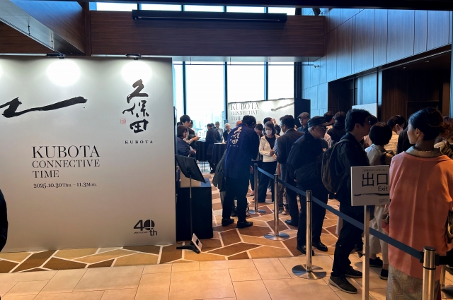 2025年の10月30日から5日間、渋谷スクランブルスクエアで開催された体験型ポップアップ『KUBOTA CONNECTIVE TIME』は、一升瓶で1万円近くする『久保田 萬寿』や秋限定酒など、代表銘柄12種類をワンコインの500円で楽しめる飲み比べセットが提供されるなど、太っ腹な内容となっていました。
