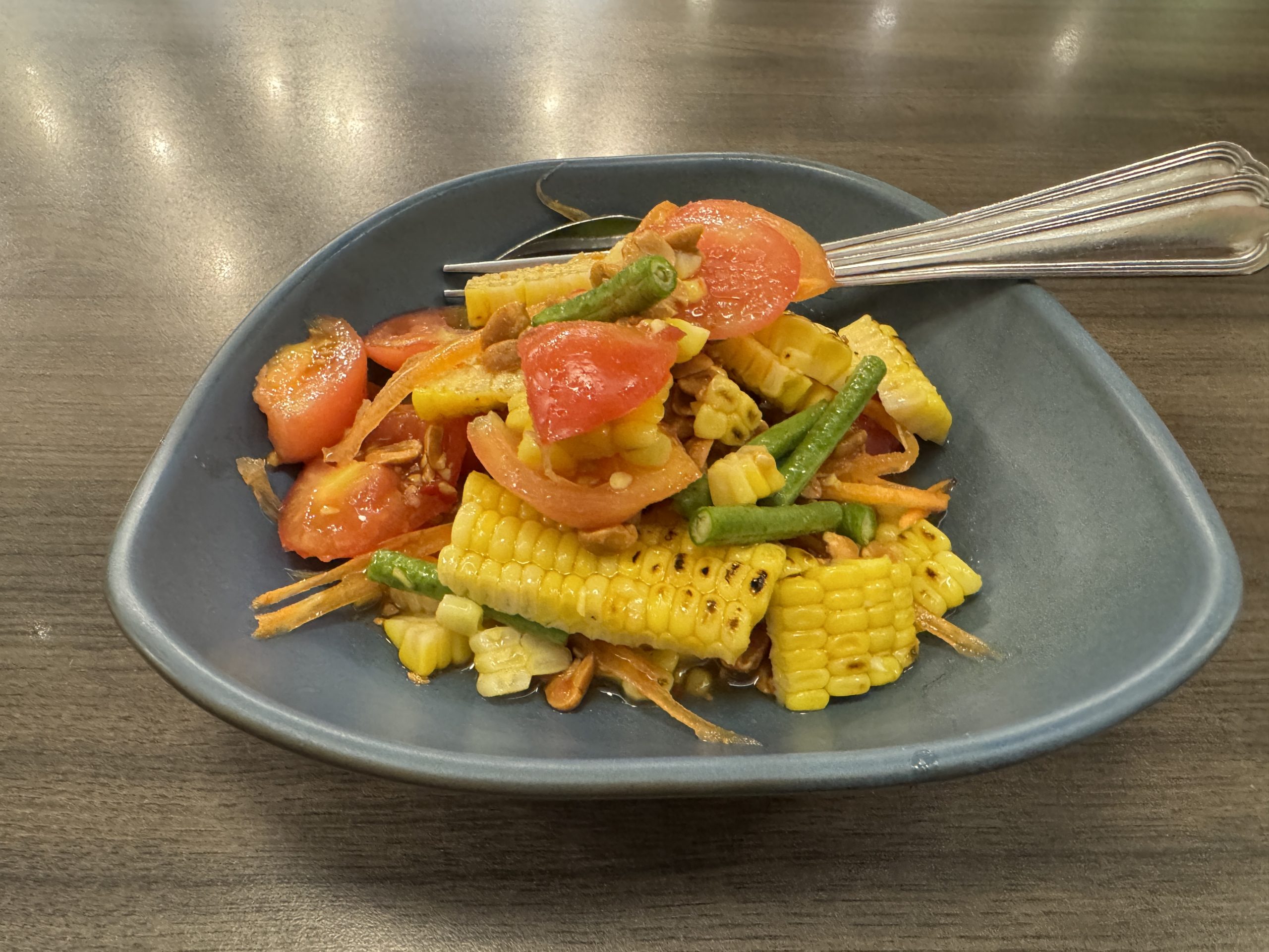 このソムタム、焼きトウモロコシのポテンシャルを最大限に引き出していると感じました。ほかの料理の甘酸っぱい味にもマッチするかも。あまりにも良すぎて、気がつけば、すべてペロリと食べきっていたのでした。