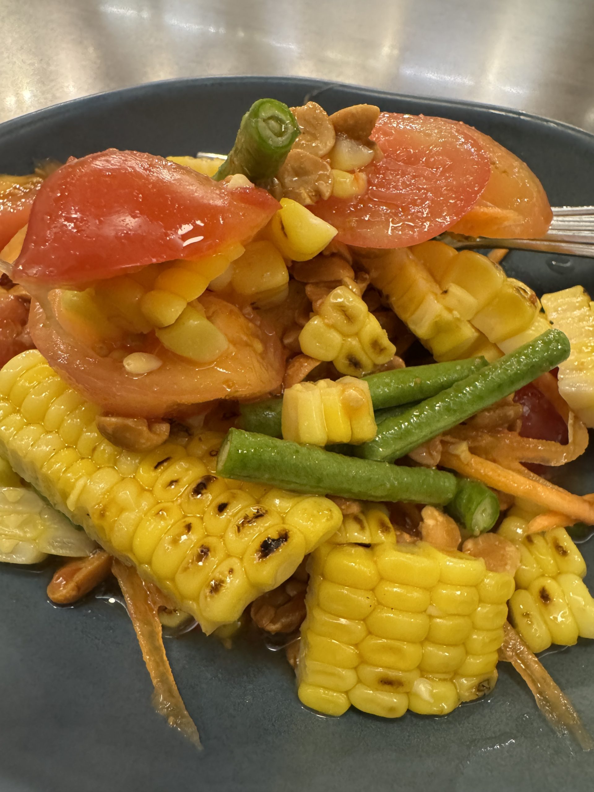 焼きトウモロコシのソムタムとグリーンマンゴーのソムタム