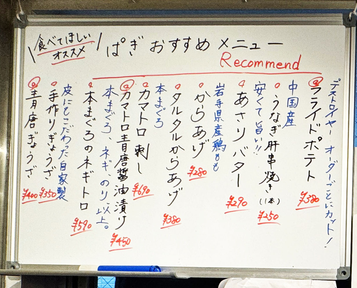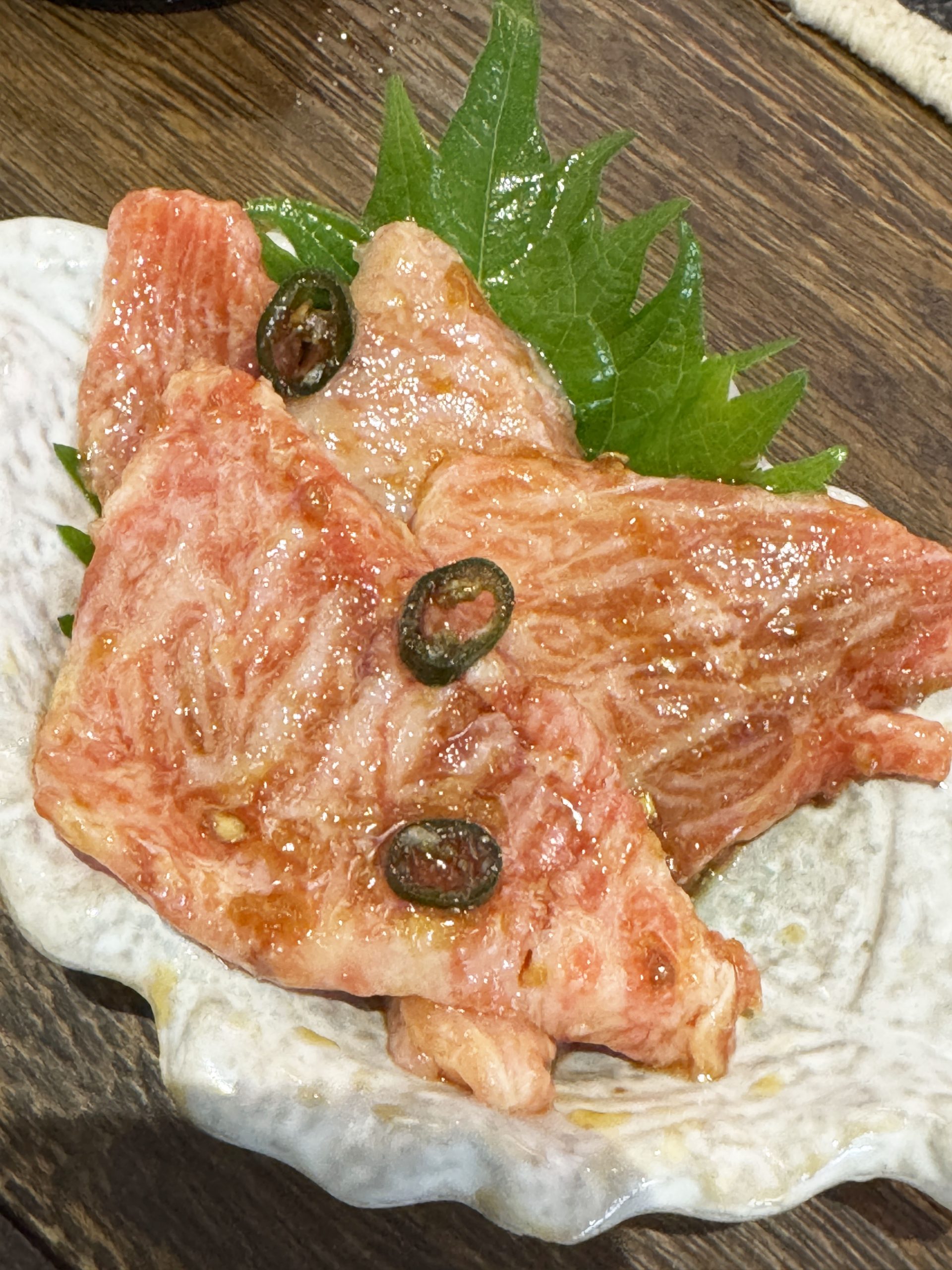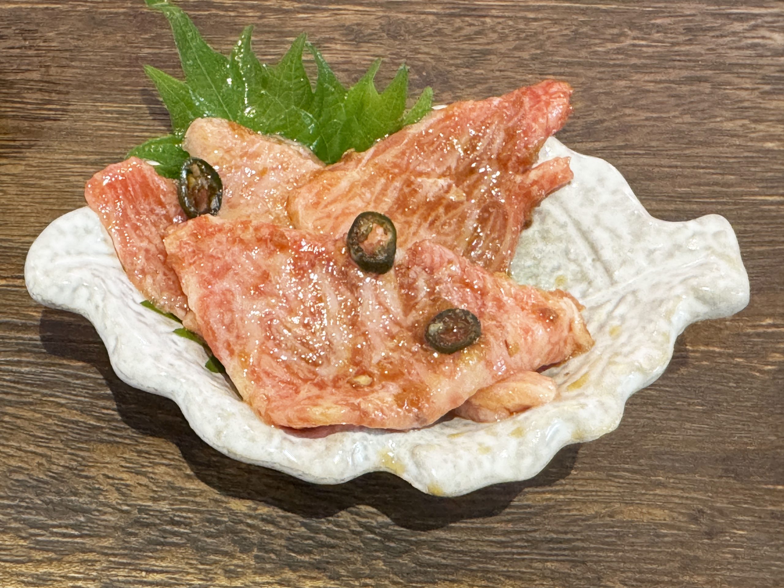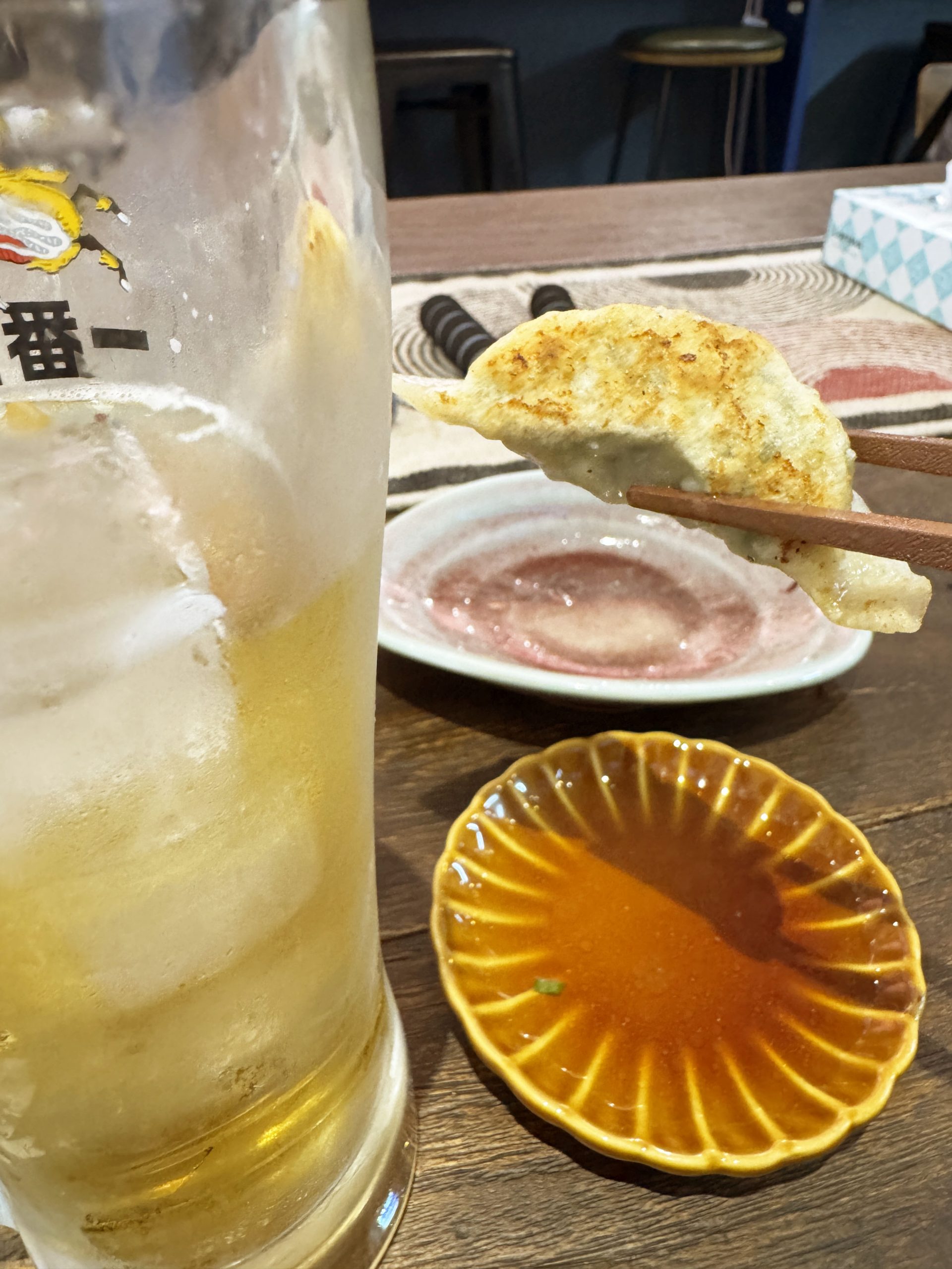 まずは青唐餃子3個(400円)と本まぐろカマトロ刺し(690円)をオーダー。