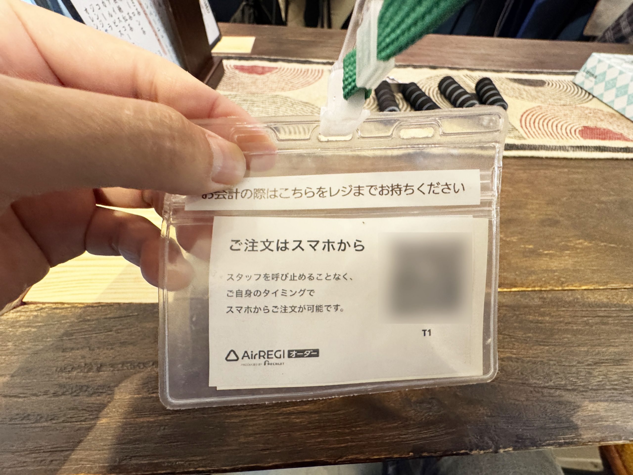 お店に入ったら、まずQRコードが記載されたケースを取ります。