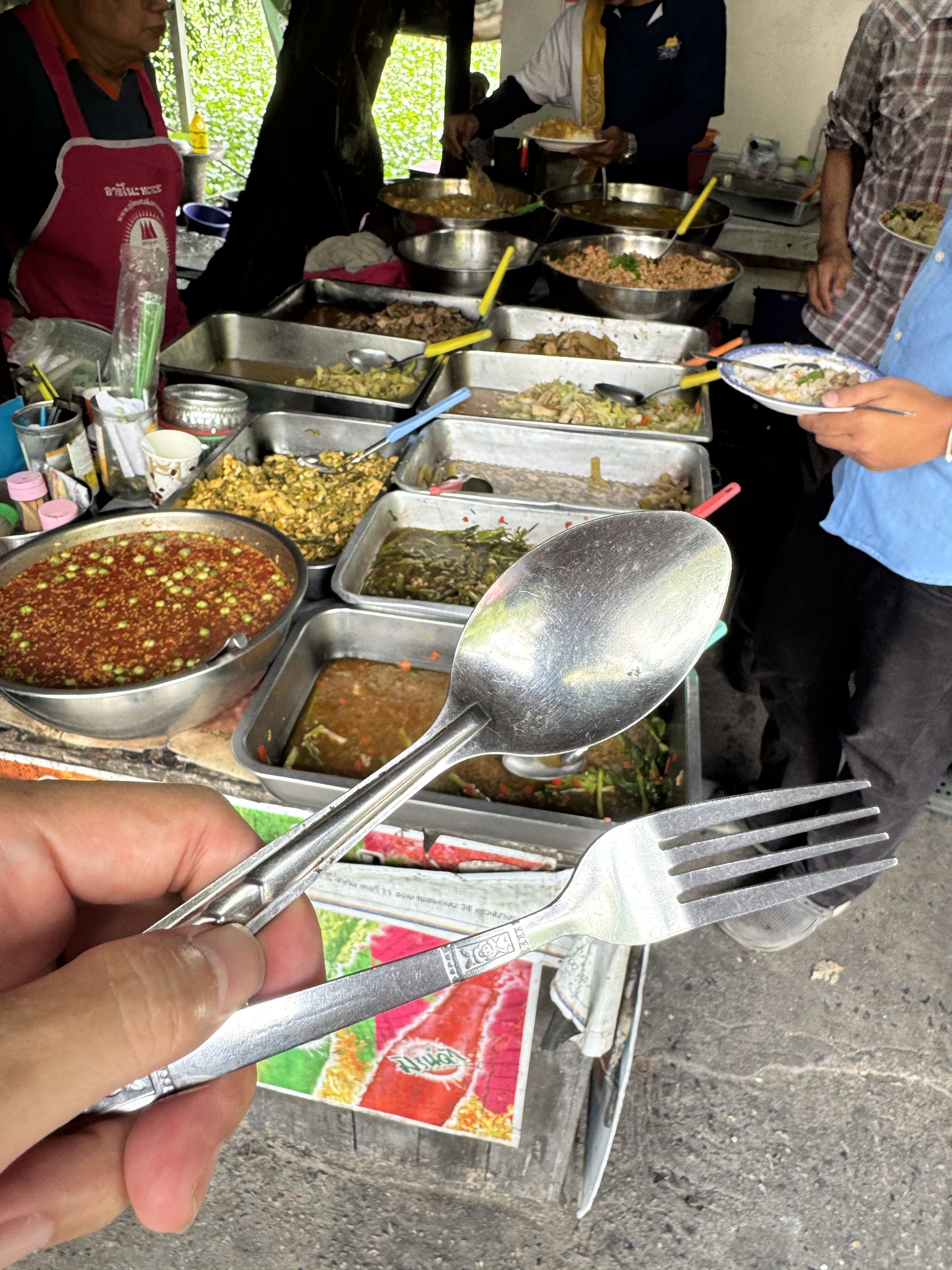 支払うと、店員さんからスプーンとフォークを渡されます。それが、支払いを済ませたという証明にもなります。