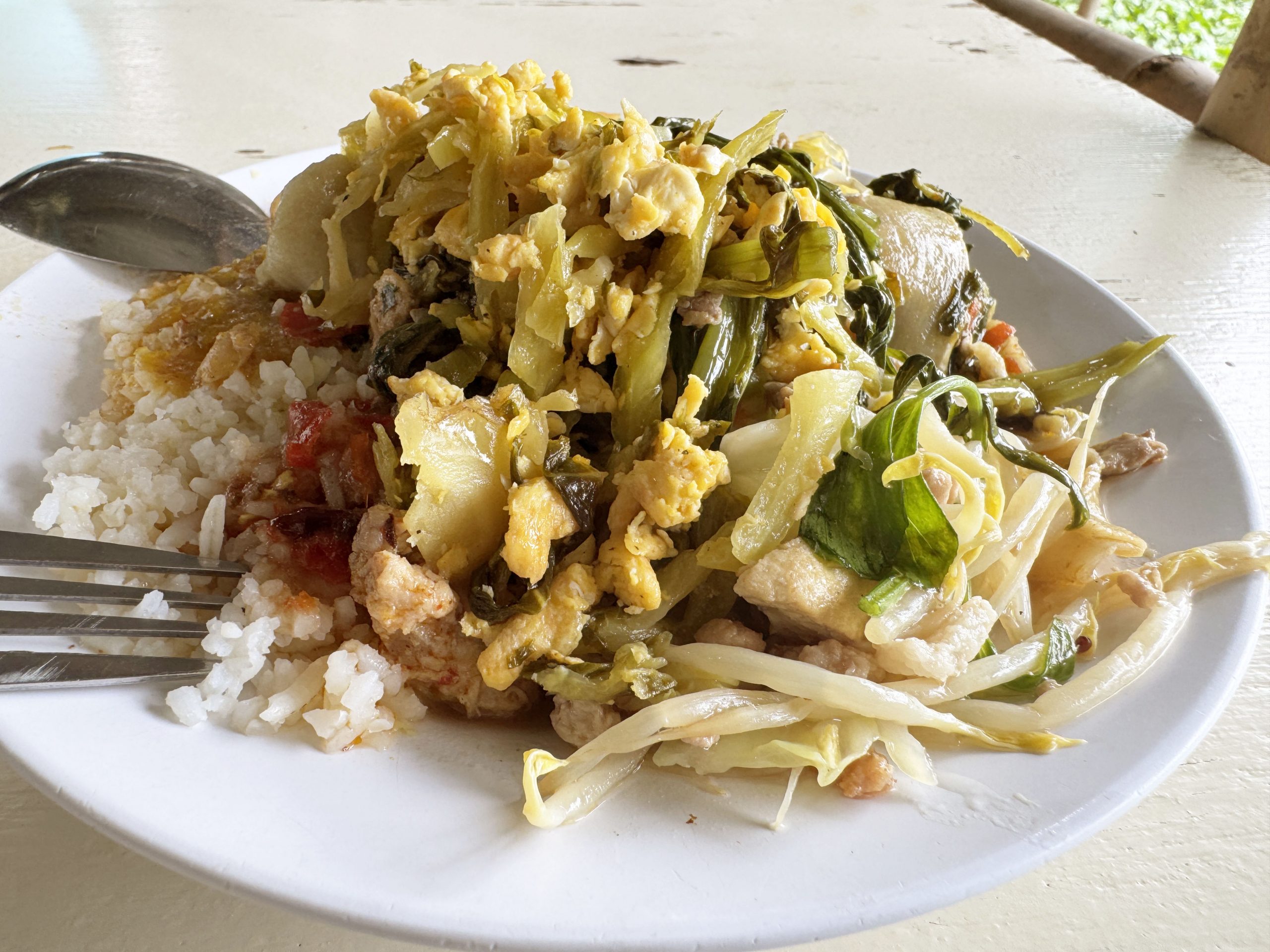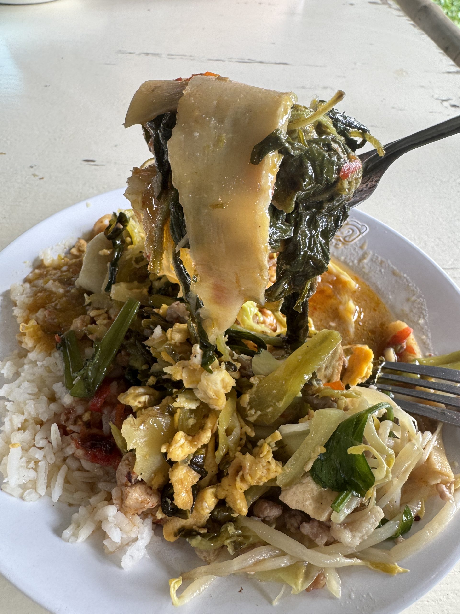 ガッツリと皿に盛りまくっても良いのですが、食べ放題なので、あせらずに普通の量を盛りました。あらゆるタイ料理をライスにかけて、タイ料理とタイ料理の融合を楽しみます。かなり良いです。