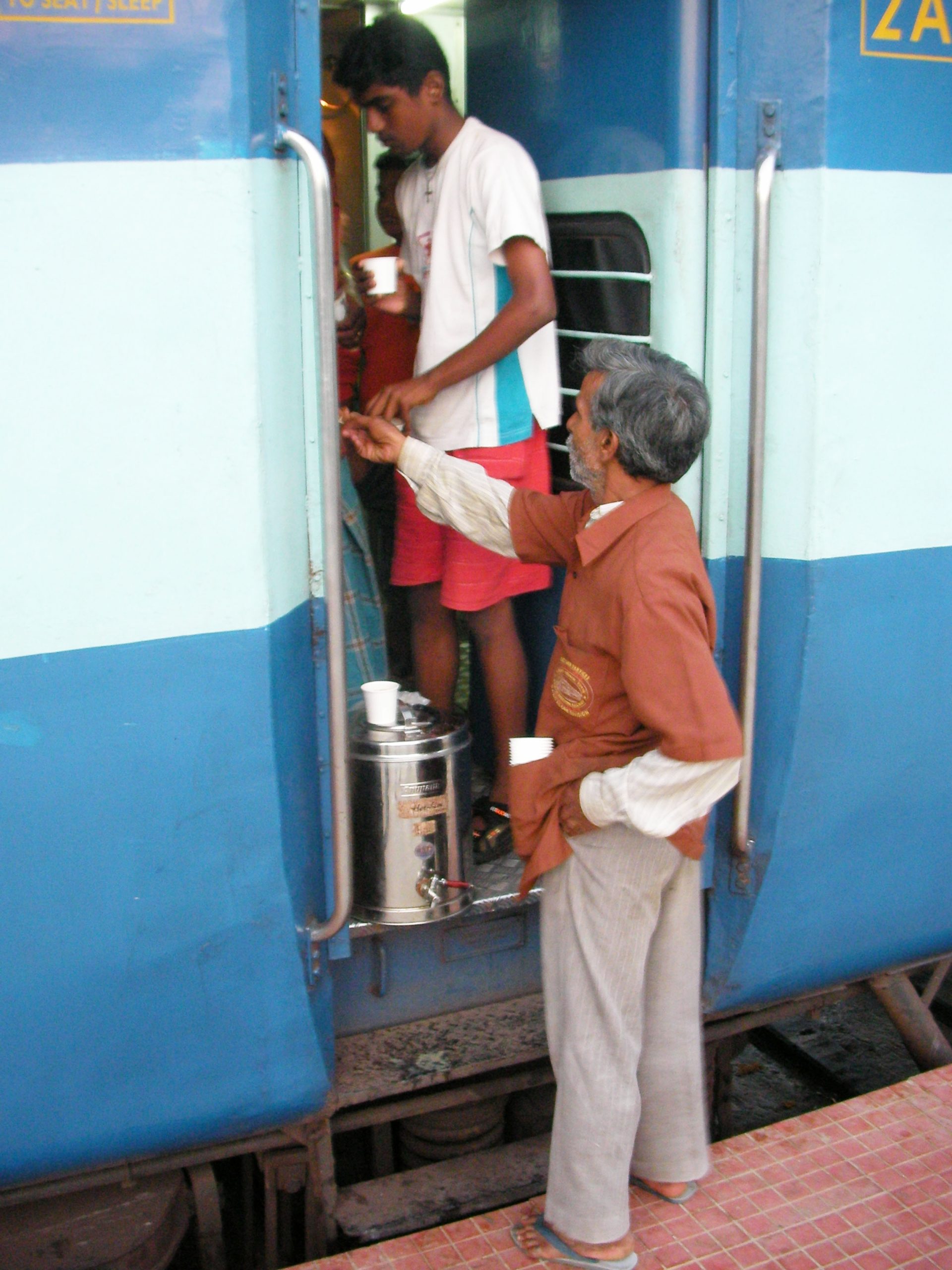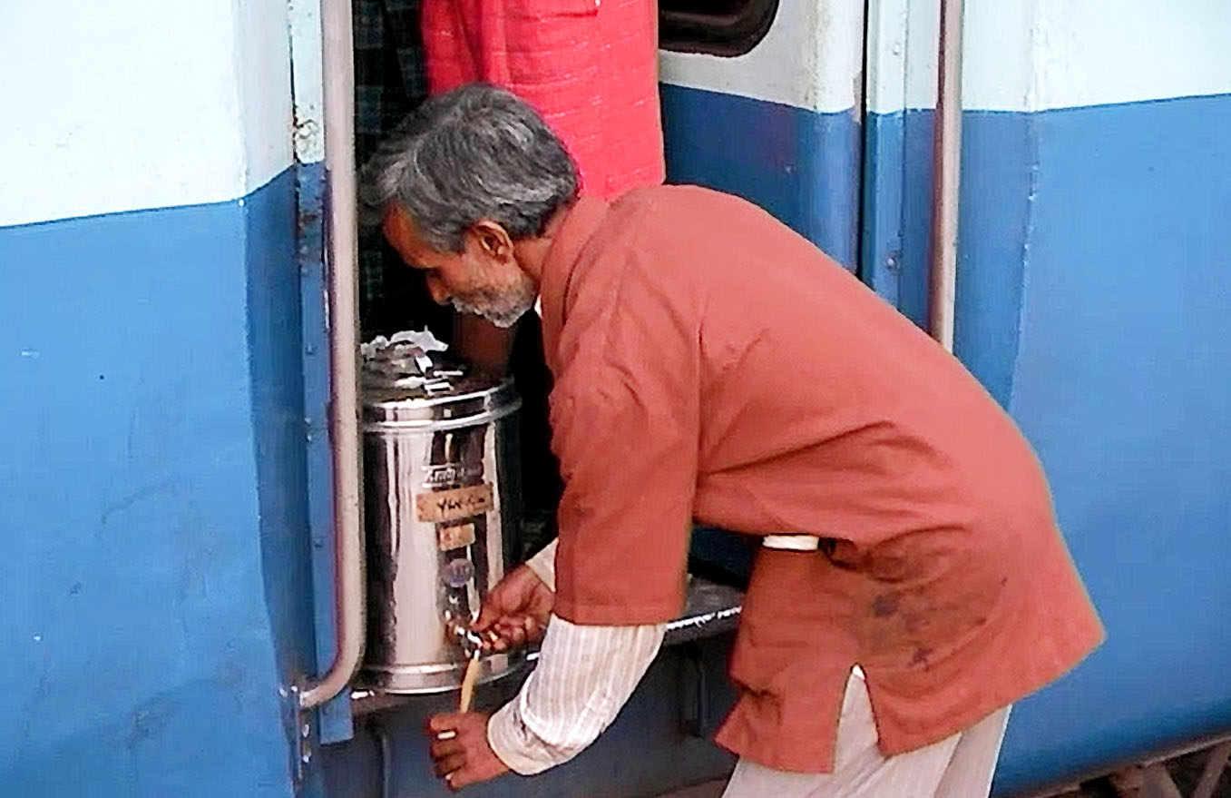 「チャイチャイチャイチャ~イ」と叫びながら列車の乗客にチャイを売るおじさんもいます。