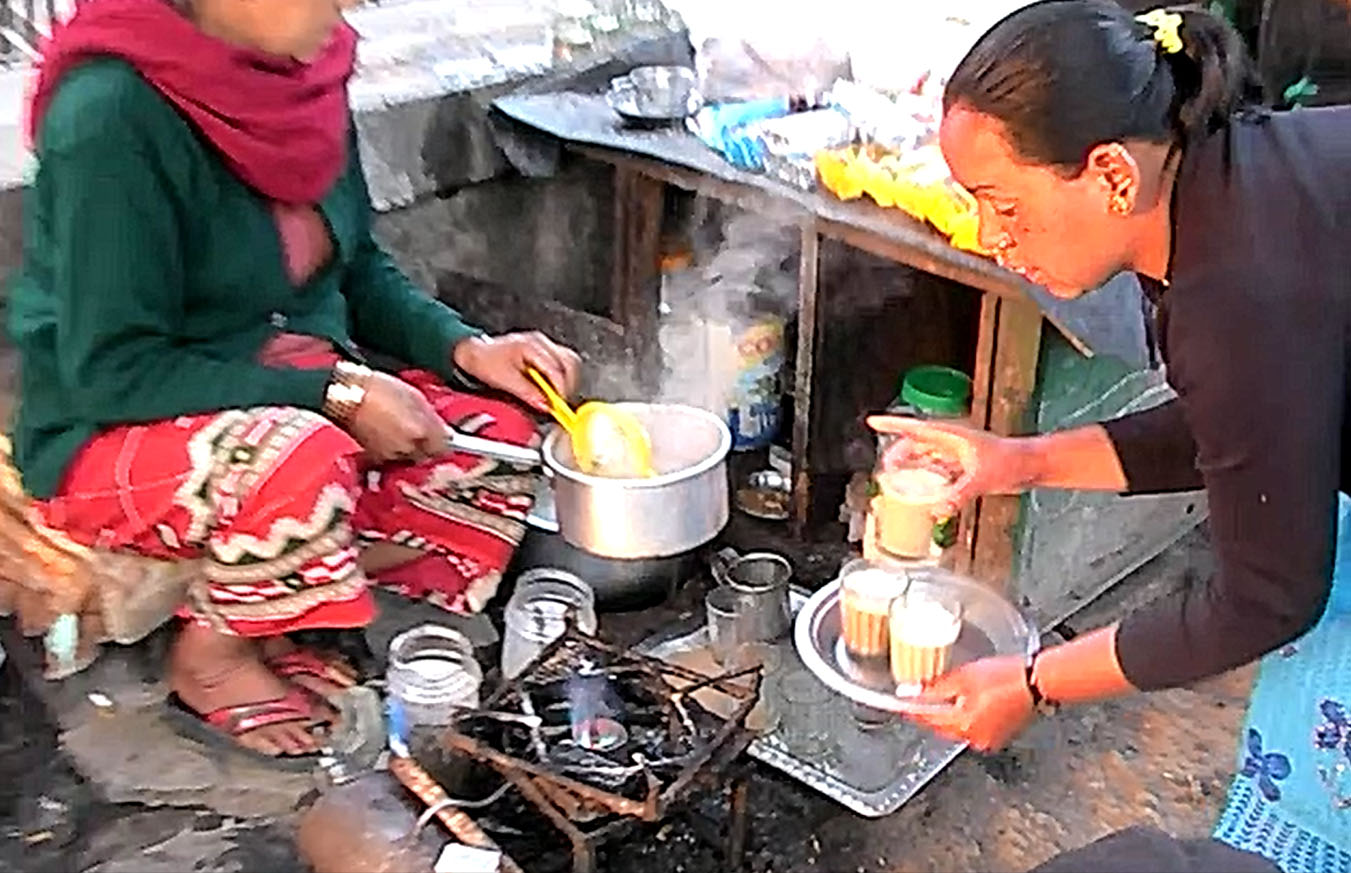 これはバス停でお姉さんがチャイを作ってくれるお店。