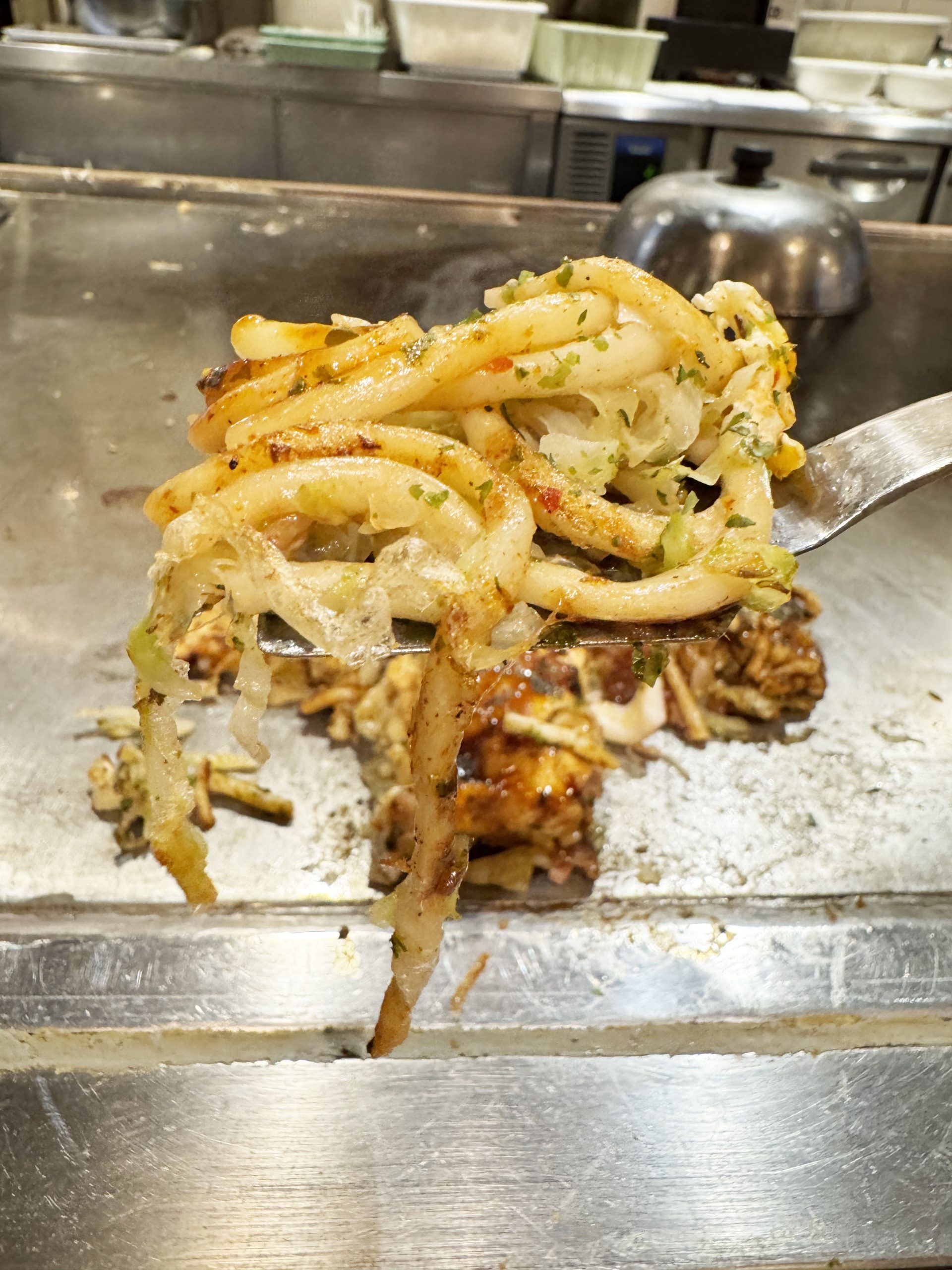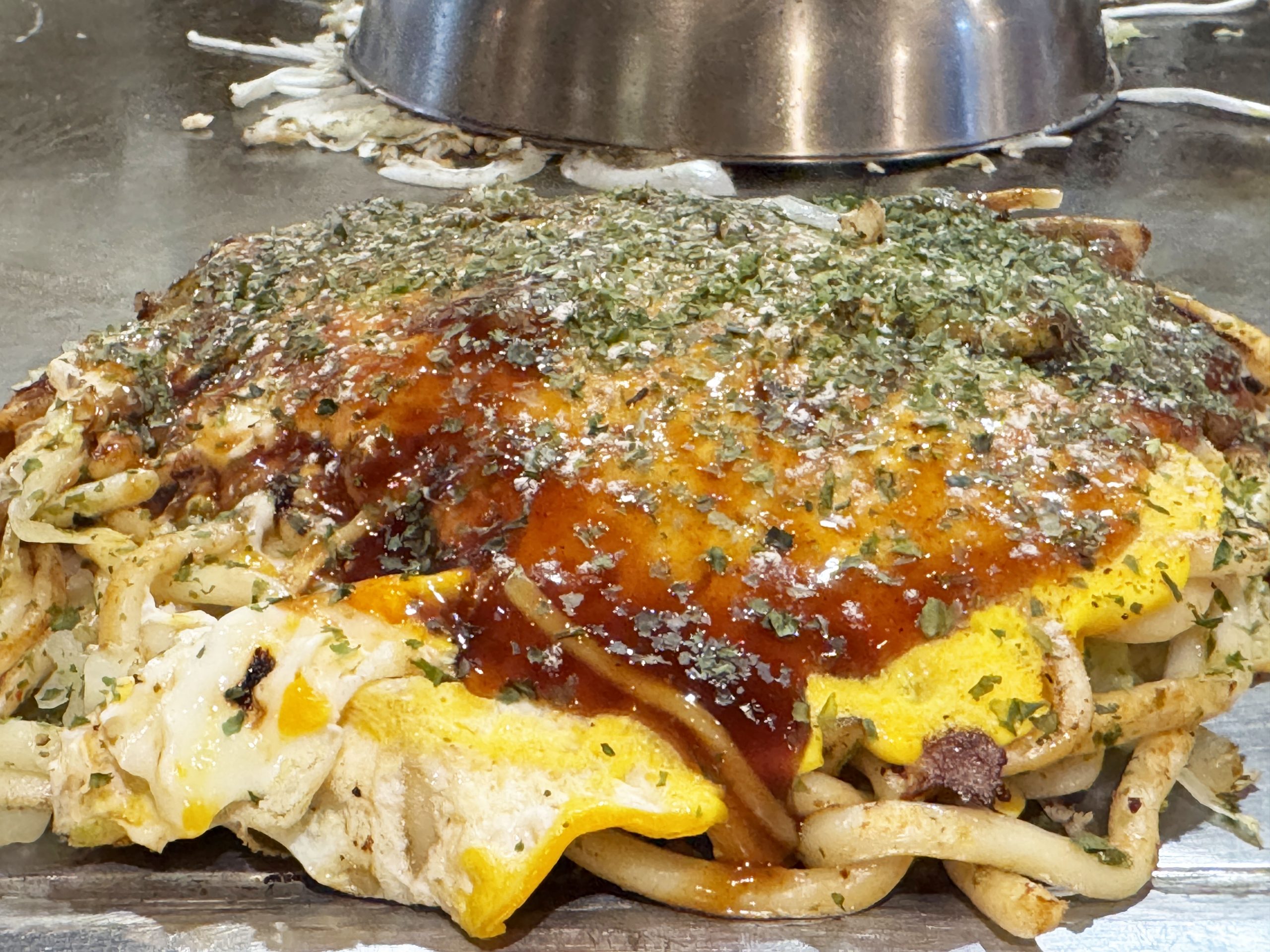 そして立ち昇る、ソースが鉄板で焼ける薫り、たまりません。