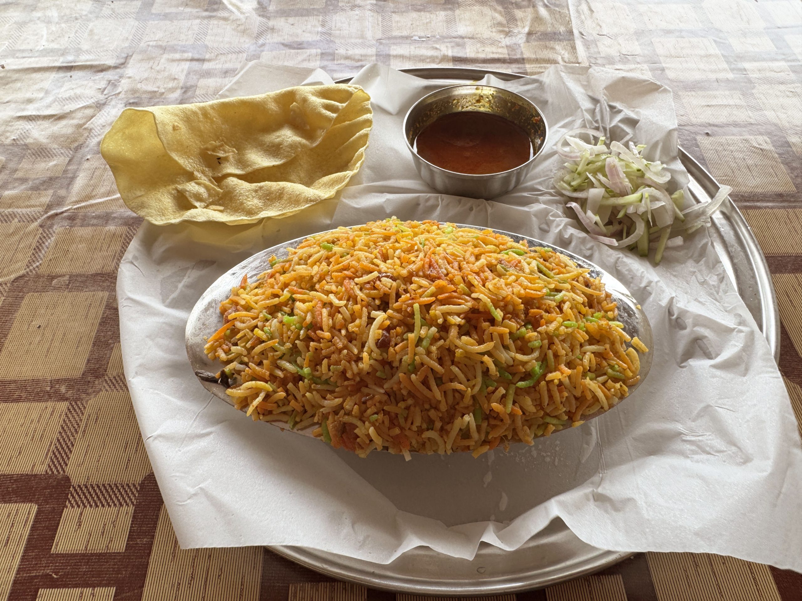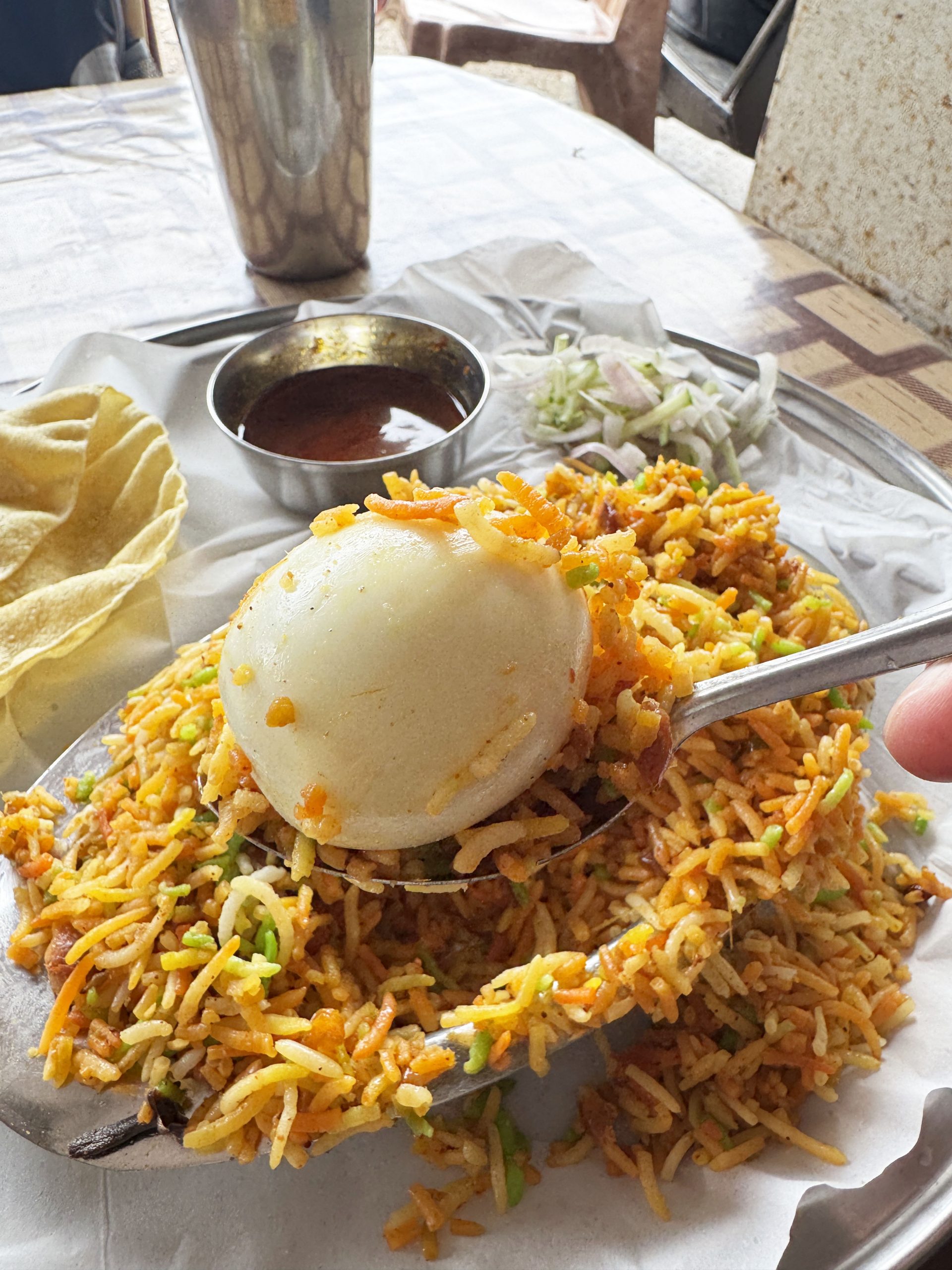 ……ということで、2025年某日、インドのポートブレアに出向いて、ビリヤニがおいしいと評判の大衆食堂に行ってみました。
