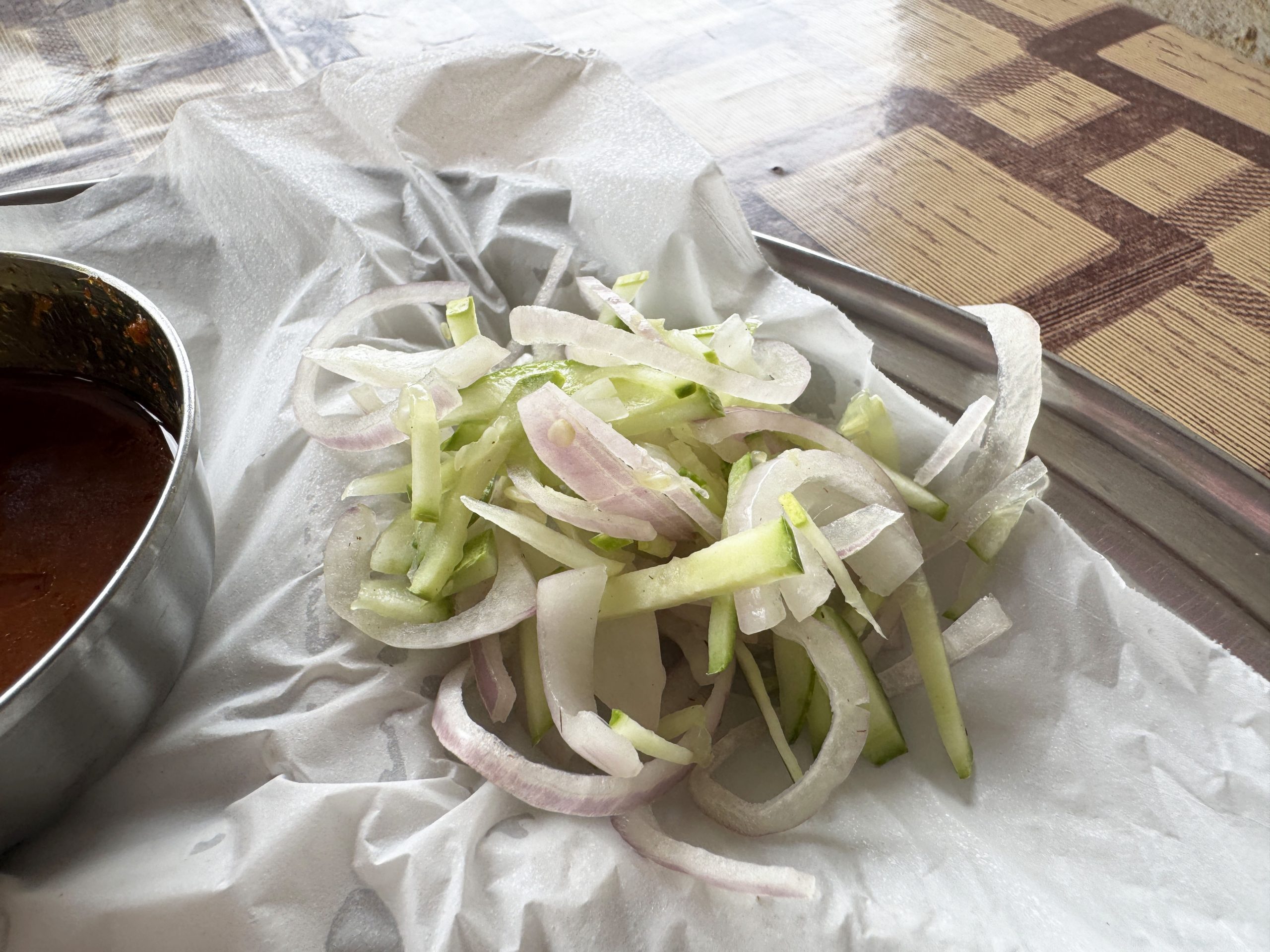 店員さんによると、生タマネギをビリヤニにガッツリ混ぜて食べてもいいし、つまみながら食べてもいいし、グレイビーソースもダイレクトにすすってもいいそうな。つまり食べ方は自由。どう食べても自由。ビリヤニの食べ方、フリーダム、リバティ、良き。