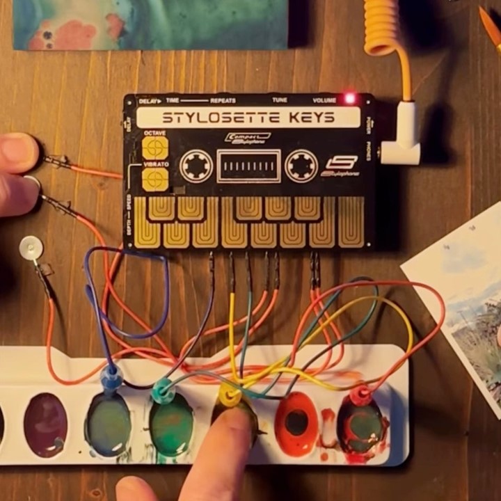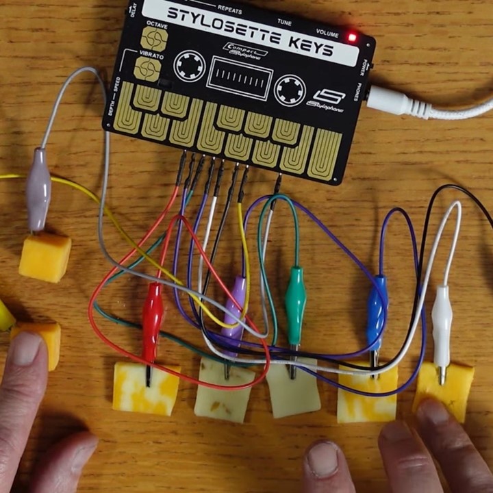 電気を通すものを本体につなぐだけで“触れば鳴るキーボード”に変身するスタイロセットについて、同社の担当者に詳しい話をしてもらいました。