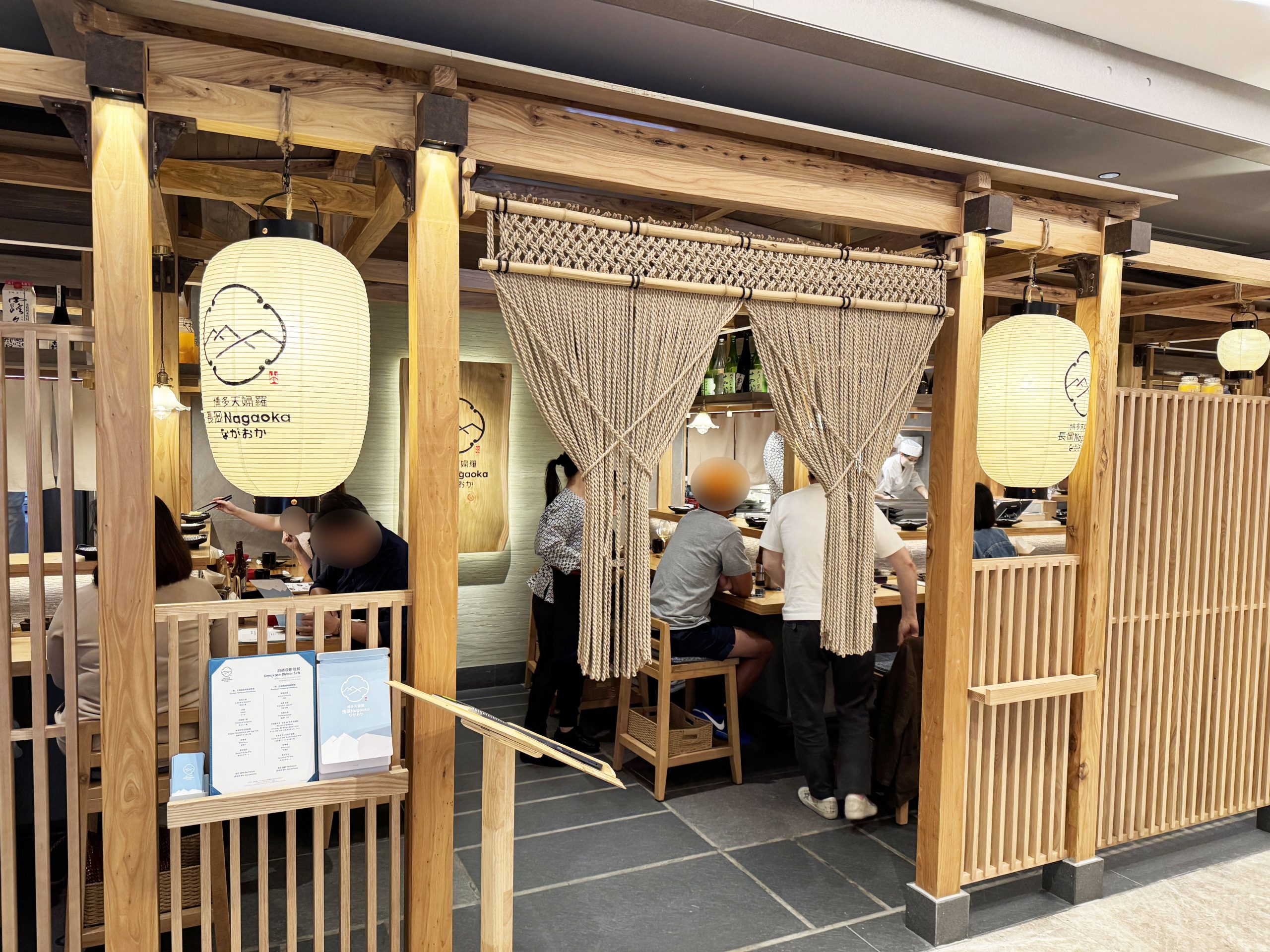 香港での正式店舗名は「博多天婦羅 長岡」(Shop 226ー229, 2/F, Lee Garden Three, 1 Sunning Road, Causeway Bay, Hong Kong)です。デパート「LEE GARDEN Three」の2階にあります。テナントにもかかわらず、本格的な和風の店構え、雰囲気を重要視しているようです。