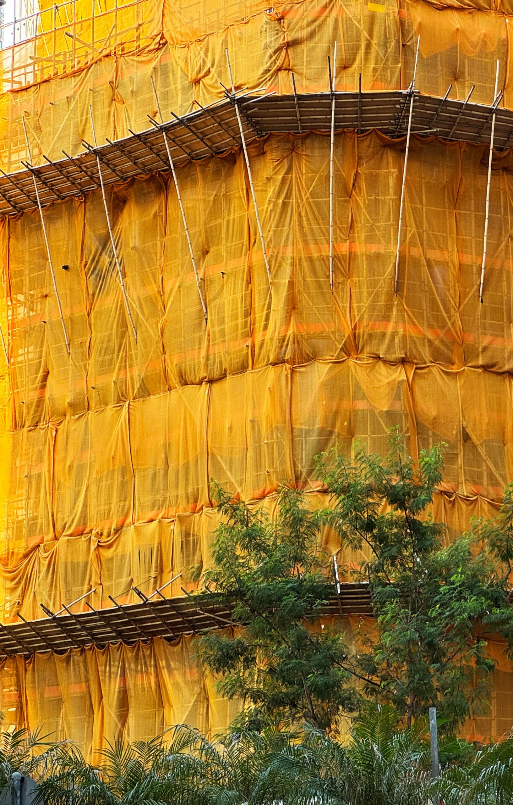 そんな人口密度高めな香港ですが、建築物で独特なポイントといえば、建築現場の「竹の足場」でしょう。日本を含む多くの国では鉄製の足場を使っていますが、香港では竹がメインです。メインというより、ほぼ竹です。