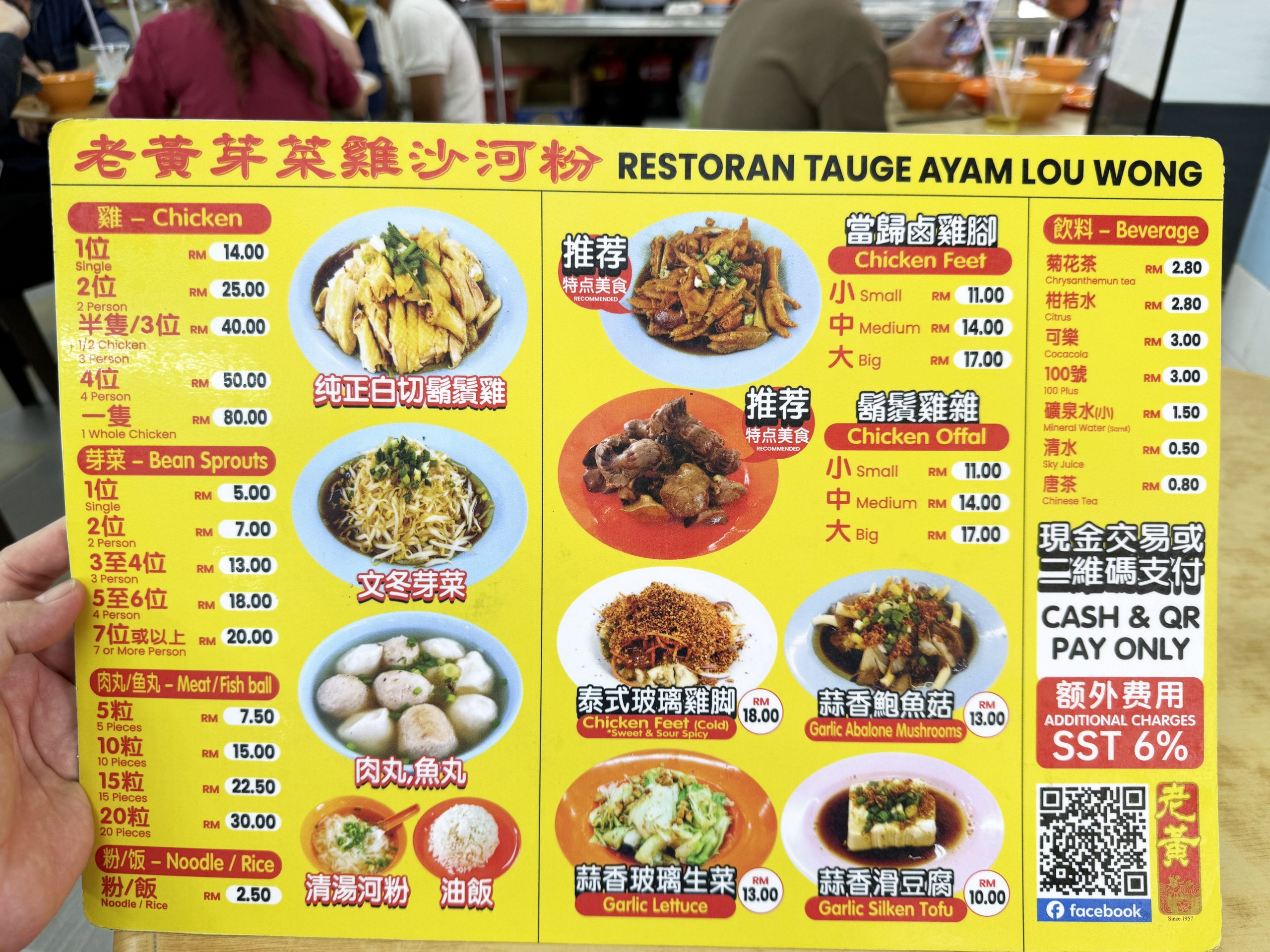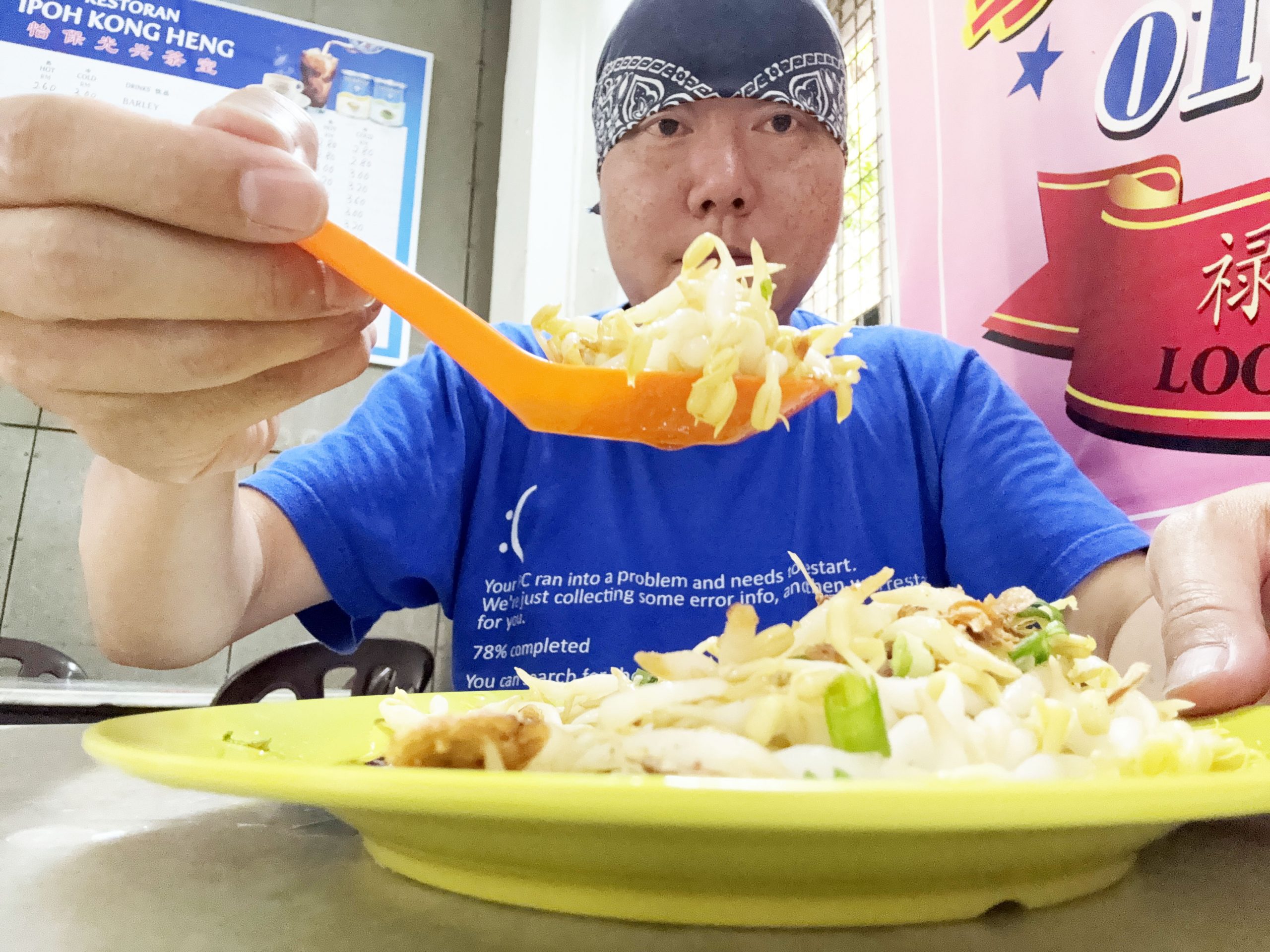 実際にイポーもやしを食べてみることにしました。出向いたのは大衆食堂「老黄芽菜雞沙河粉」(Restoran Tauge Ayam Lou Wong / 49, Jalan Yau Tet Shin, Taman Jubilee, 30000 Ipoh, Perak)。