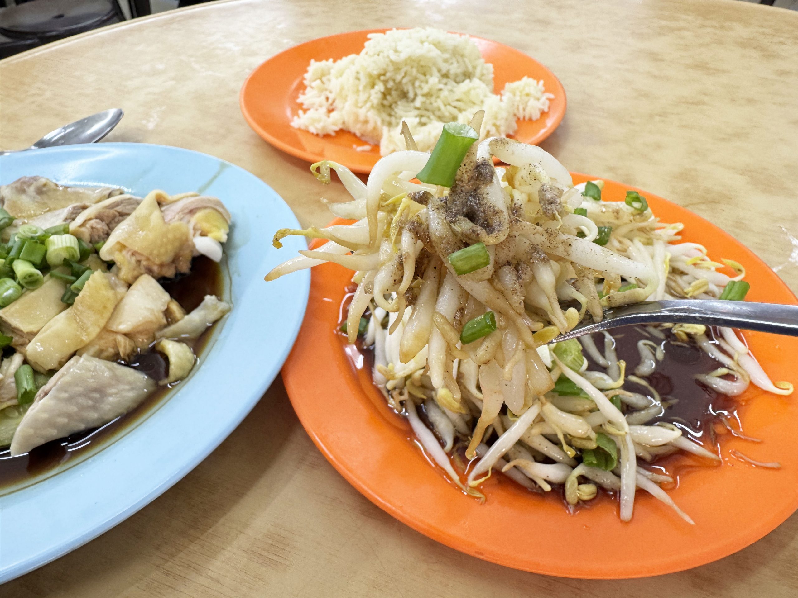そんなイポーモヤシを食べつつライスも食べる。ときおり、煮込みチキンを食べて、またライス。今度はイポーもやしを食べてチキンを食べ、オイリーな状態からイポーもやしを食べてさっぱり感を堪能する。たまらないフロー、ここにあり。