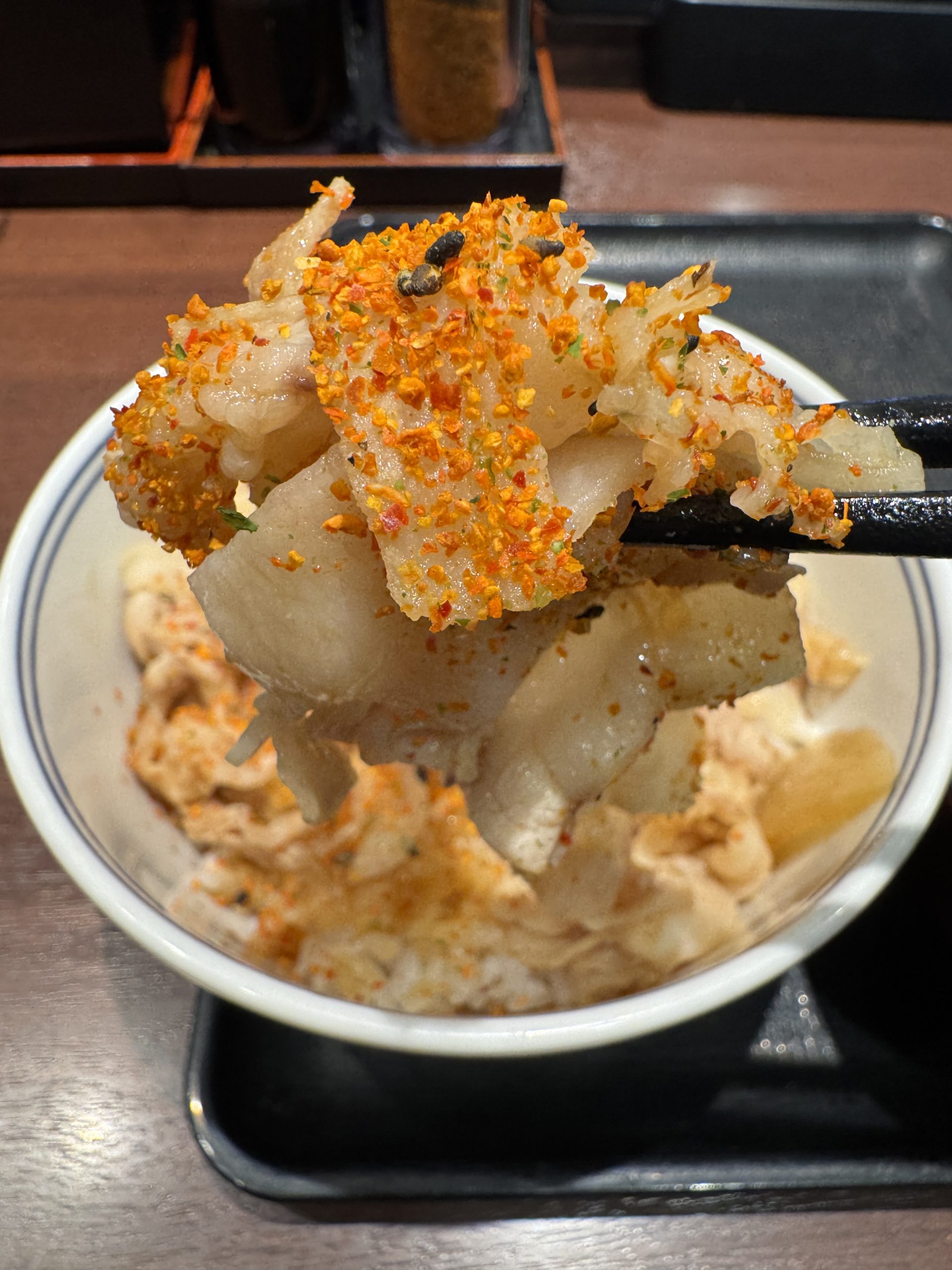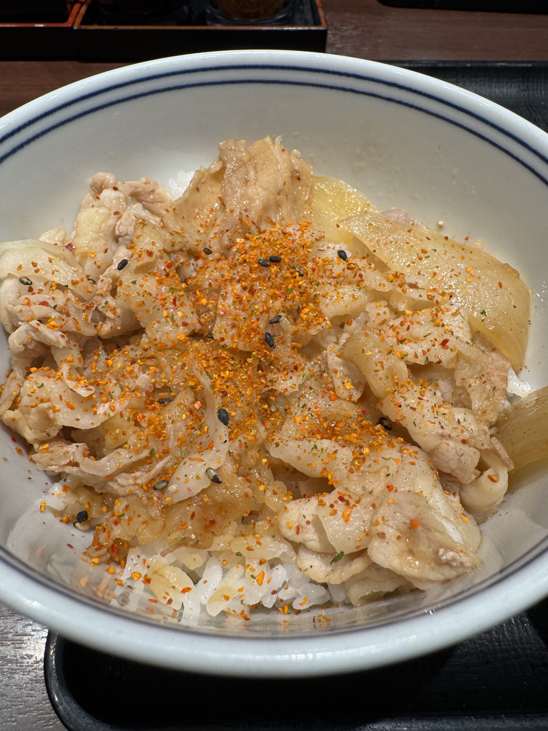 豚丼の良さは、豚肉の優しさと、味覚を包み込むような旨味の質。そこに鋭い辛味と塩味を足すことで、良さが際立つ。最高すぎる。