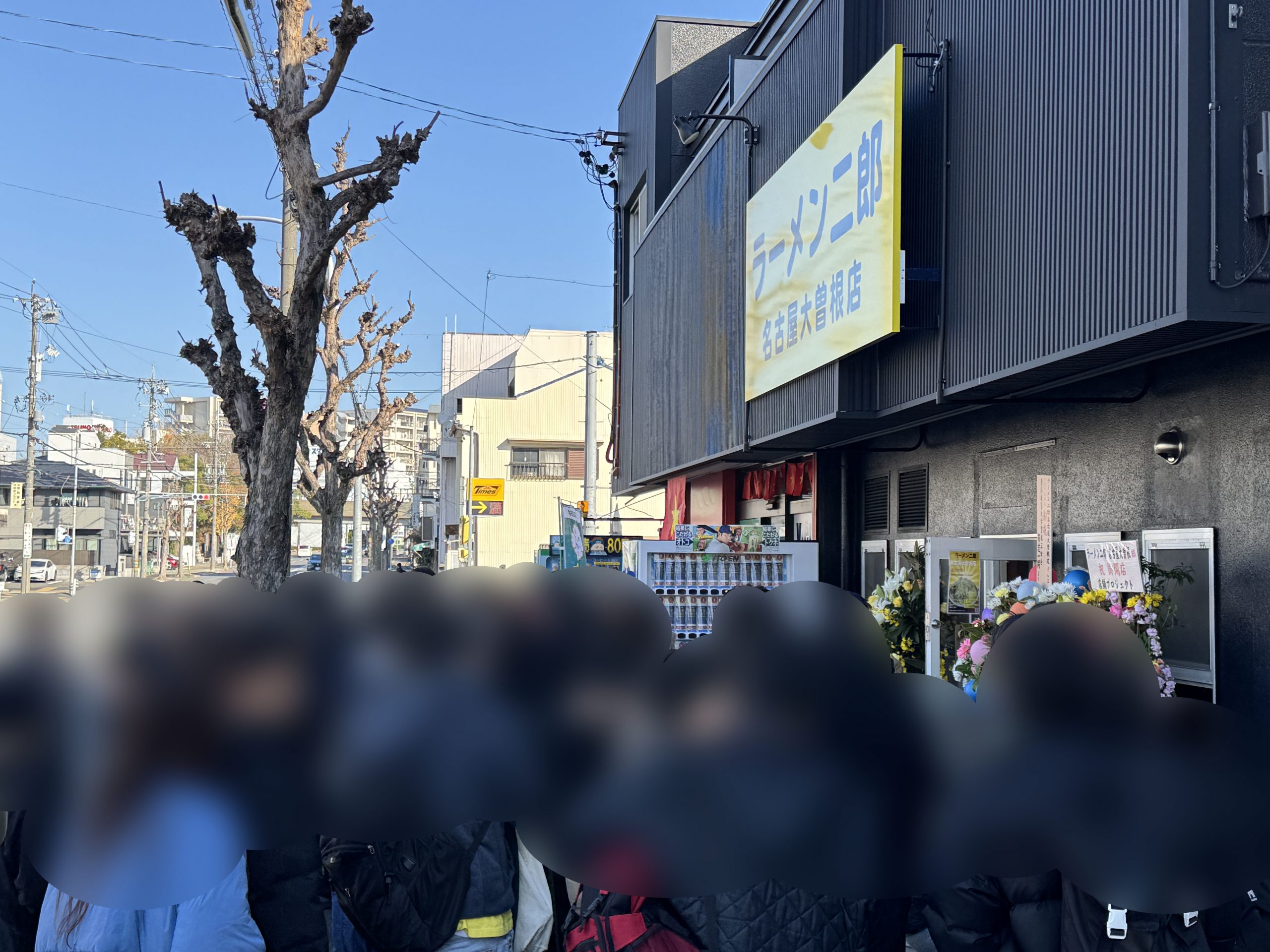 ラーメン二郎の新店舗として「ラーメン二郎 名古屋大曽根店」(愛知県名古屋市東区矢田4-3-7)がオープンした。人気バインミー専門店「ジューシーバインミー」の隣である。記念すべきオープン日は2025年11月30日だが、その前日から多くのファン(ジロリアンやスーパージロリアンやスーパージロリアンゴッド)が店舗を訪れた。