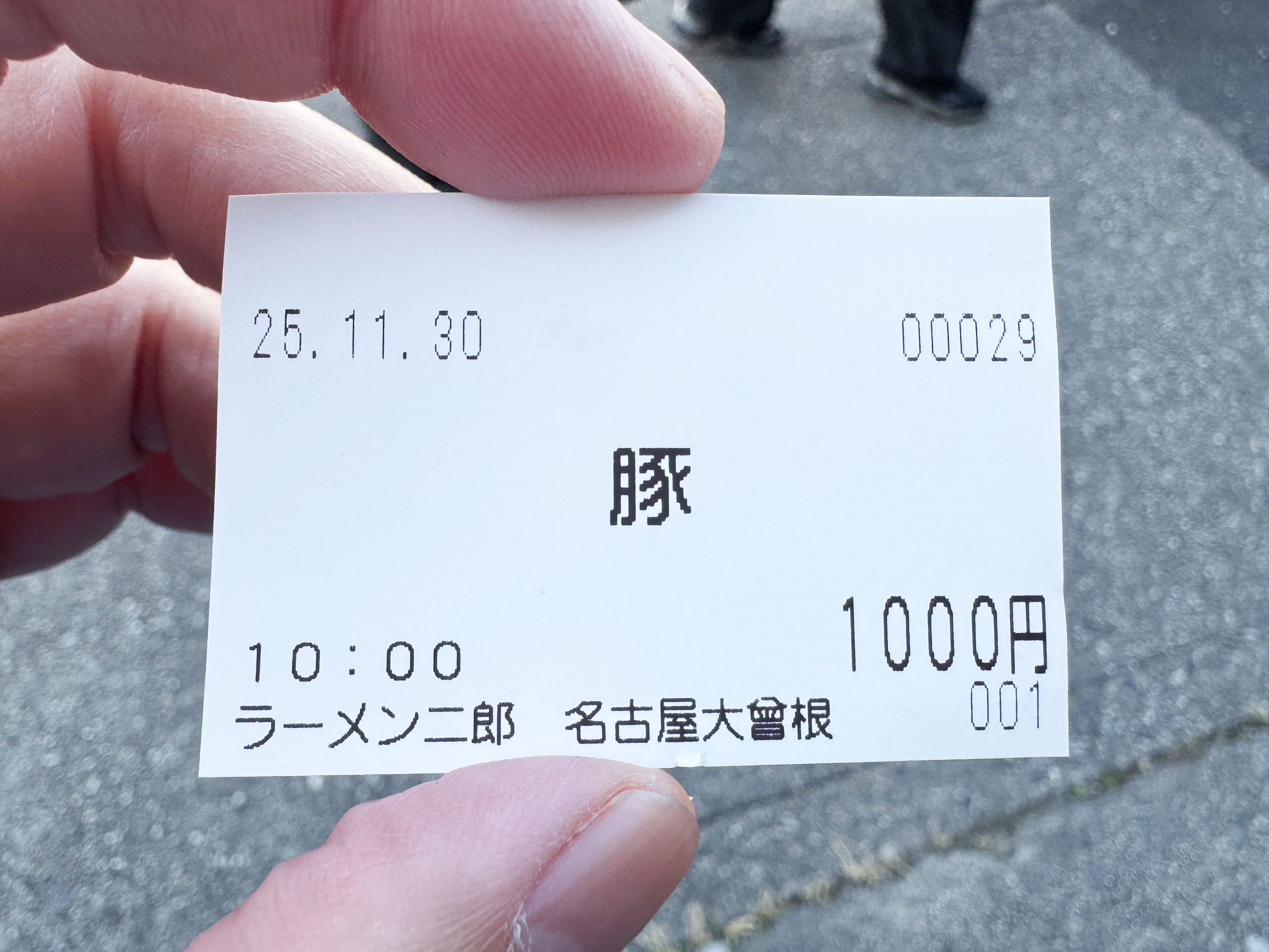 ラーメン二郎名古屋大曽根店は、前日18時ごろから整理券を配布。その整理券を持ち、翌日のオープン時間に訪れれば、ラーメンが食べられる確約を得ていた。筆者も整理券を得たのでオープン当日にラーメンを食べた。