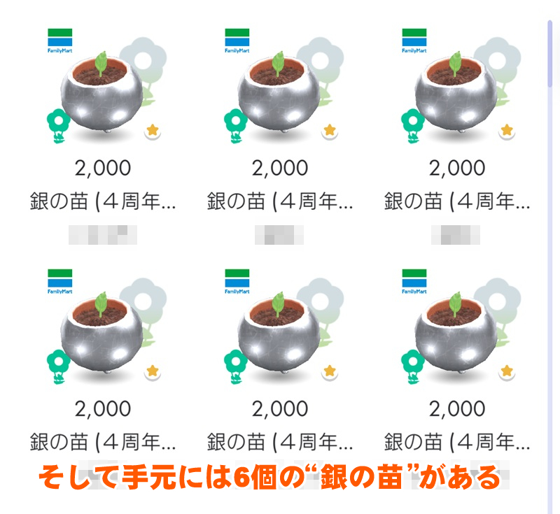 対象店舗に出現しているスペシャルスポットから3日に1度“銀の苗”が入手できるという仕組みで、約3週間のあいだに全7種類をコンプリートするにはそれなりに周回する覚悟は必要だ。