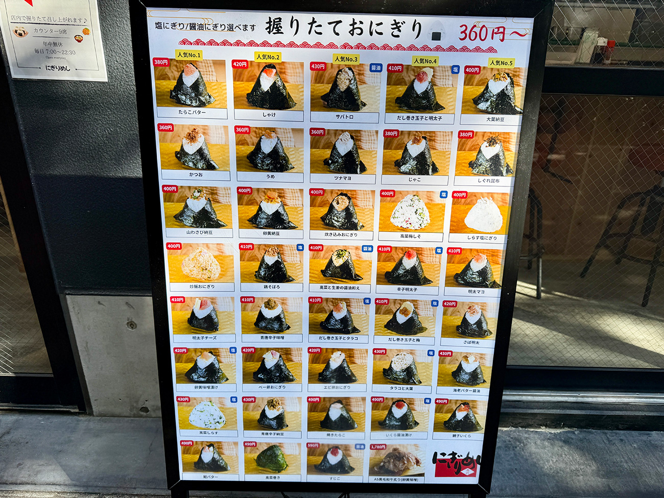 そしてこちらがおにぎりのメニュー。すすきのでもそうだったけど、種類が豊富!