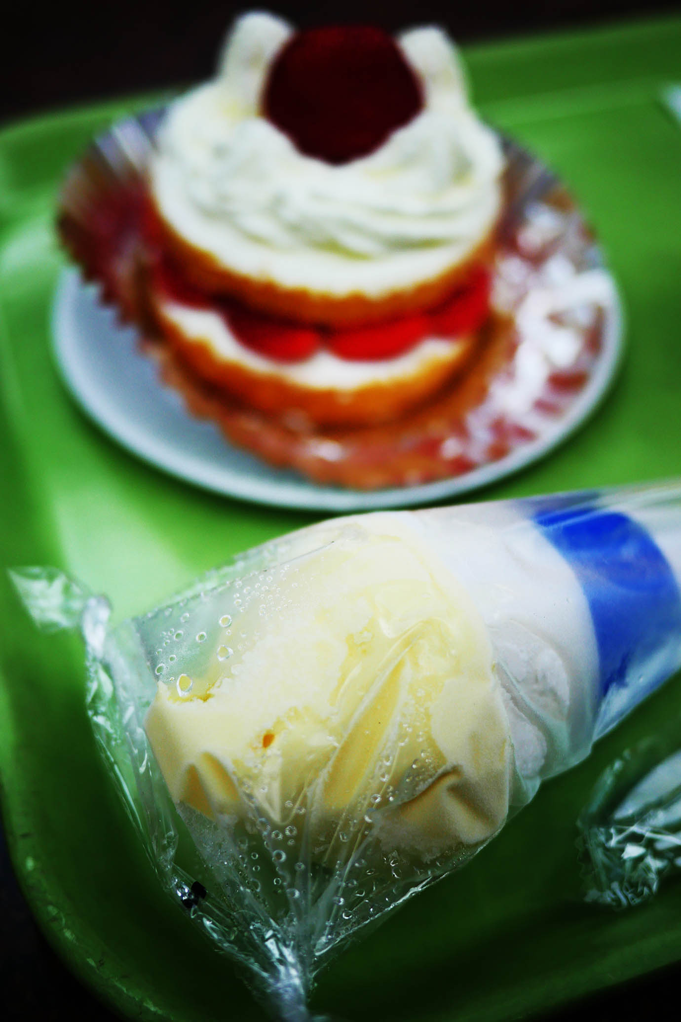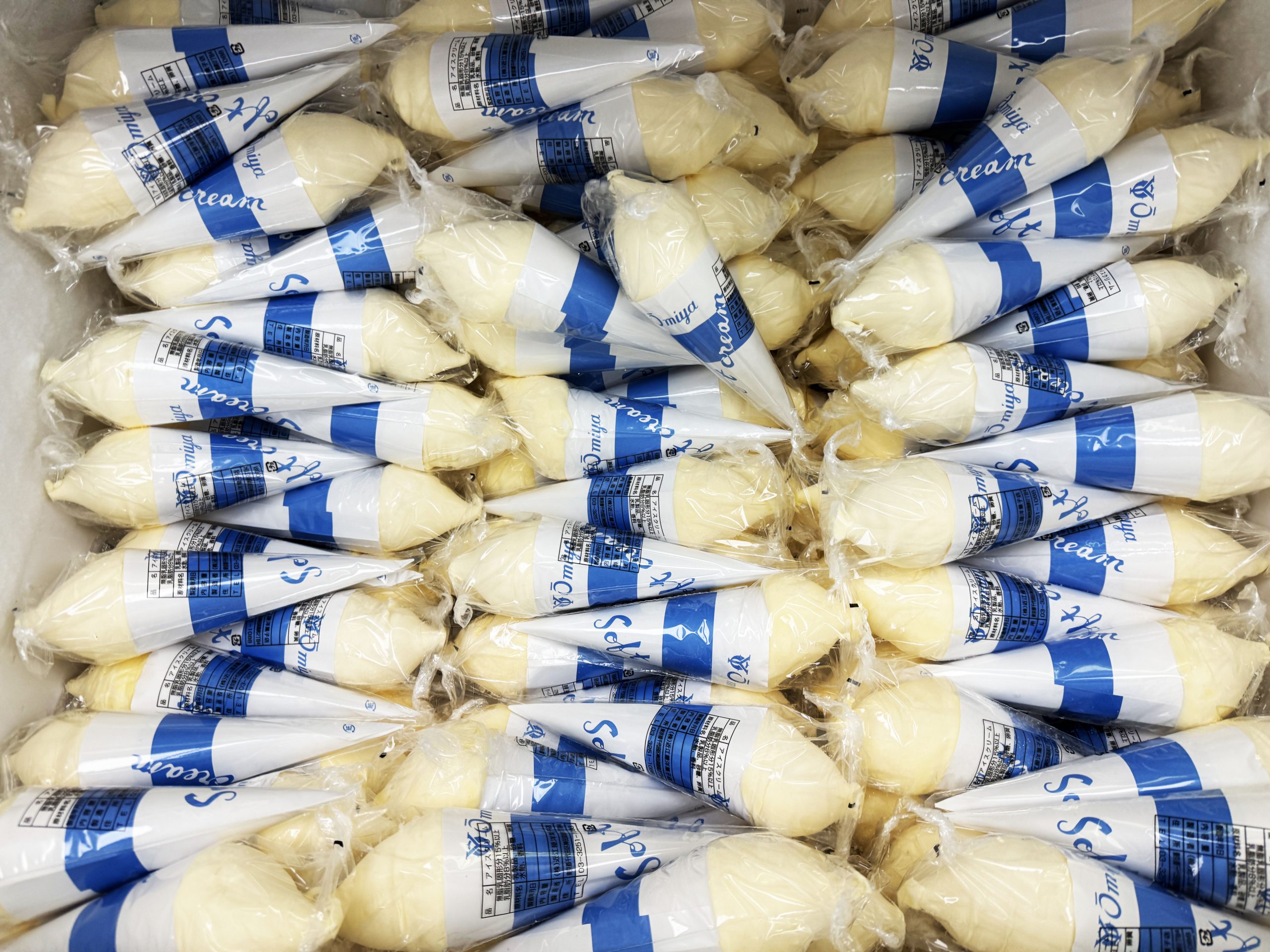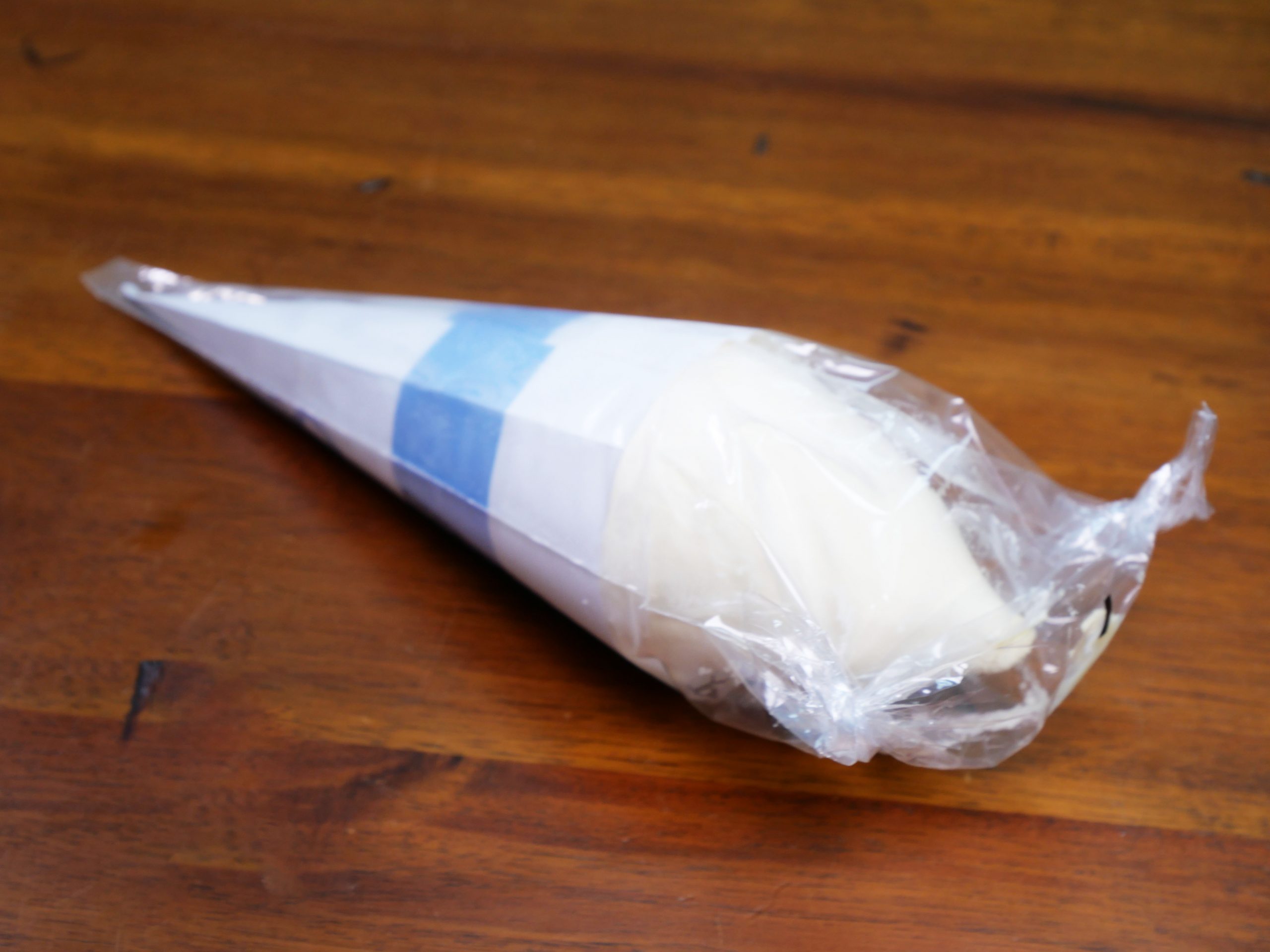 ビニールで包装されているソフトクリーム。