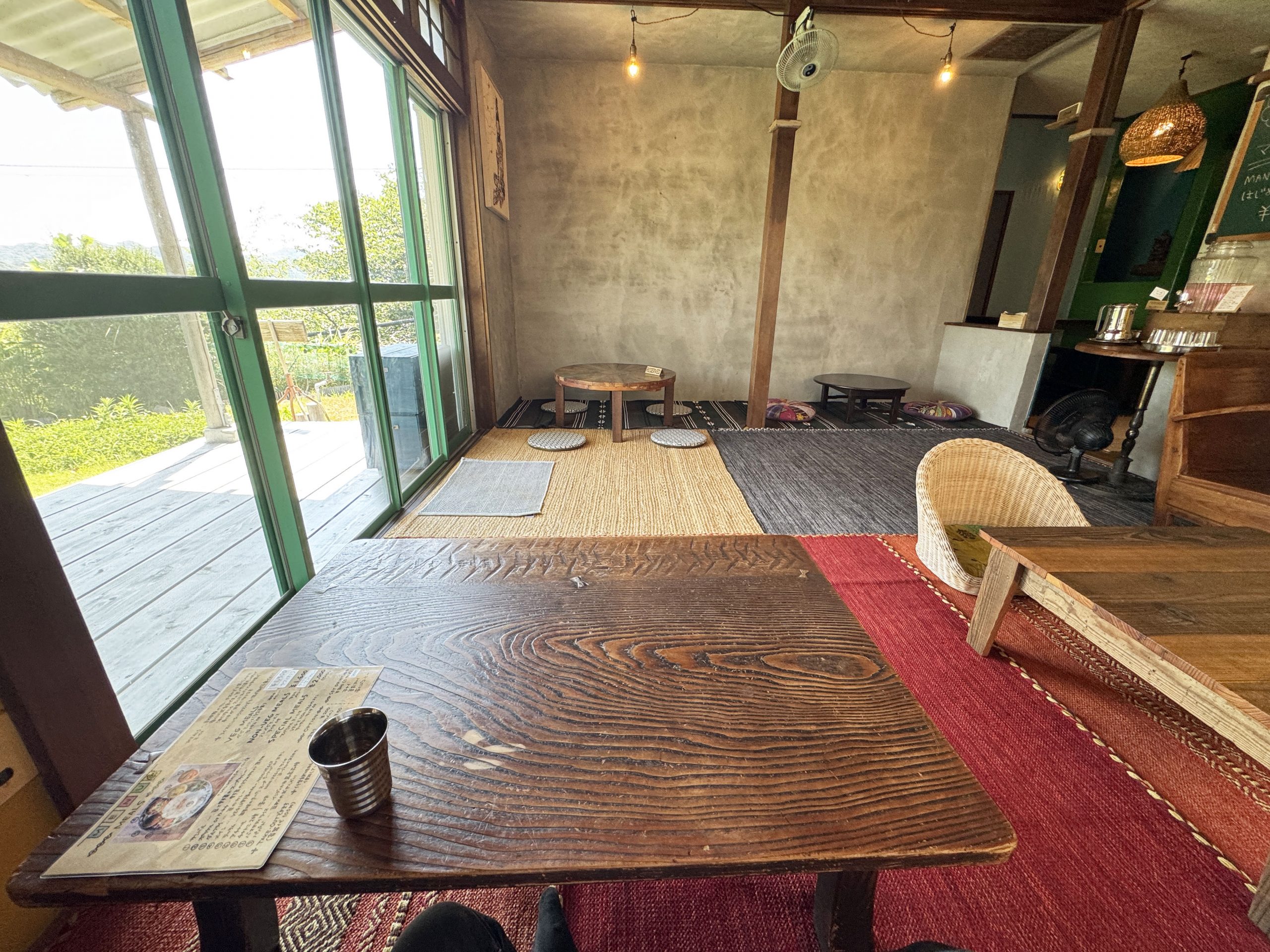 店内に入ると、やはりそこも民家的。アジアンな印象。あまりにも雰囲気がウッディーで落ち着いているため、ここで寝転んで過ごしたい気持ちになってくる。