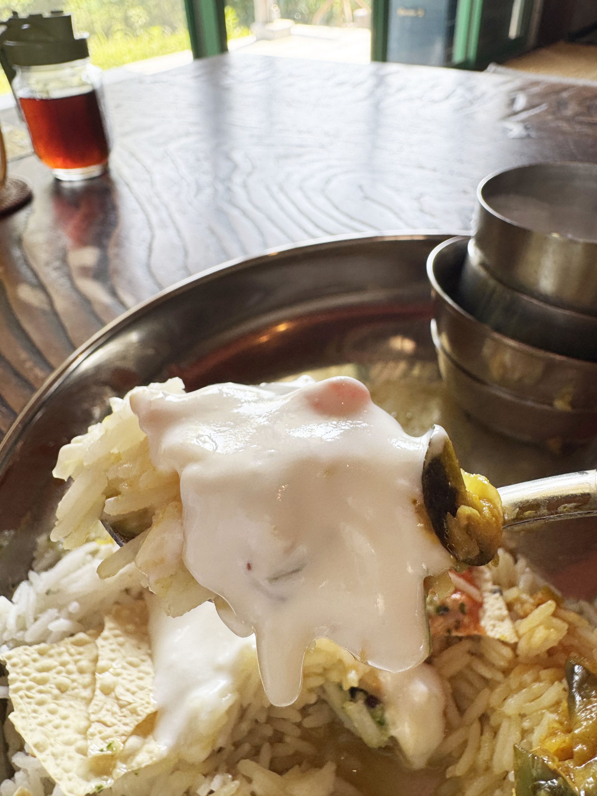 筆者はさまざまなカレーやスープなど、具材を混ぜながら食べる流れが好きなので、とりあえず混ぜてから食べる。その食べ方が大正解。たっぷりとカレーやスープのスパイスと旨味エキスを吸い込んだバスマティライスが絶品。