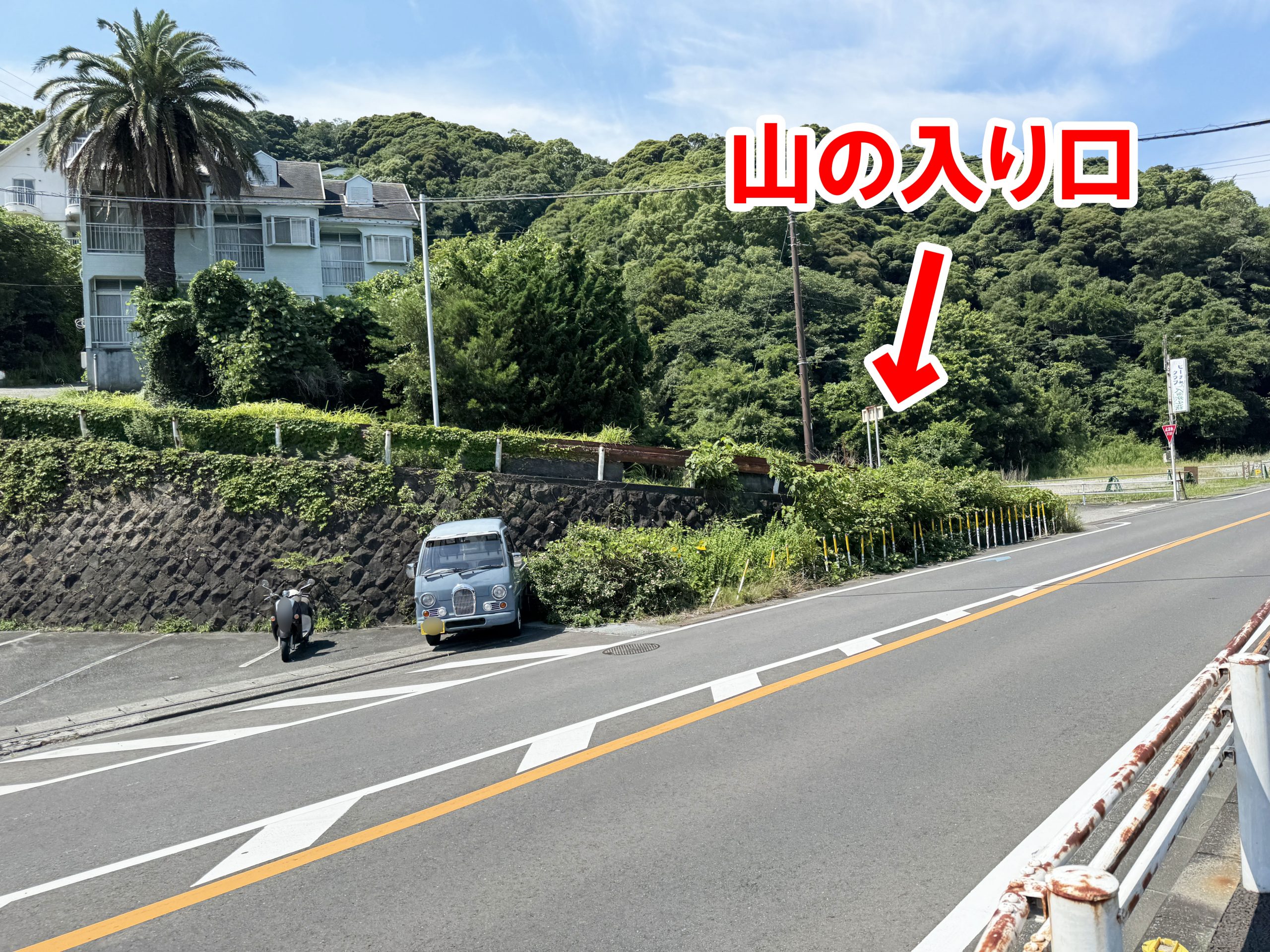 バス停から200メートルほど歩き、そこからさらに山を登る。山といっても高いわけではないのだが、200メートルほど急斜面を徒歩で登ることになる。