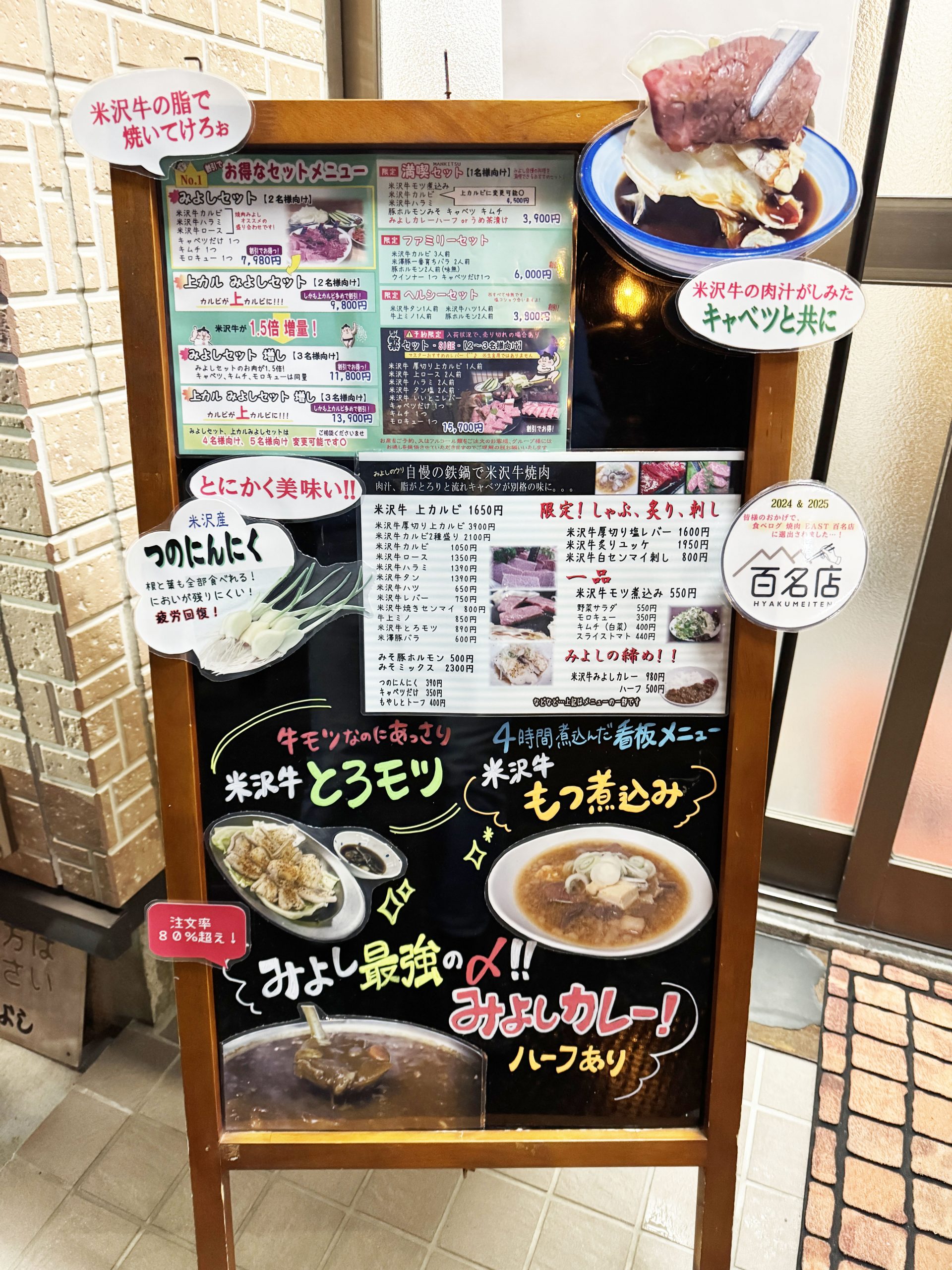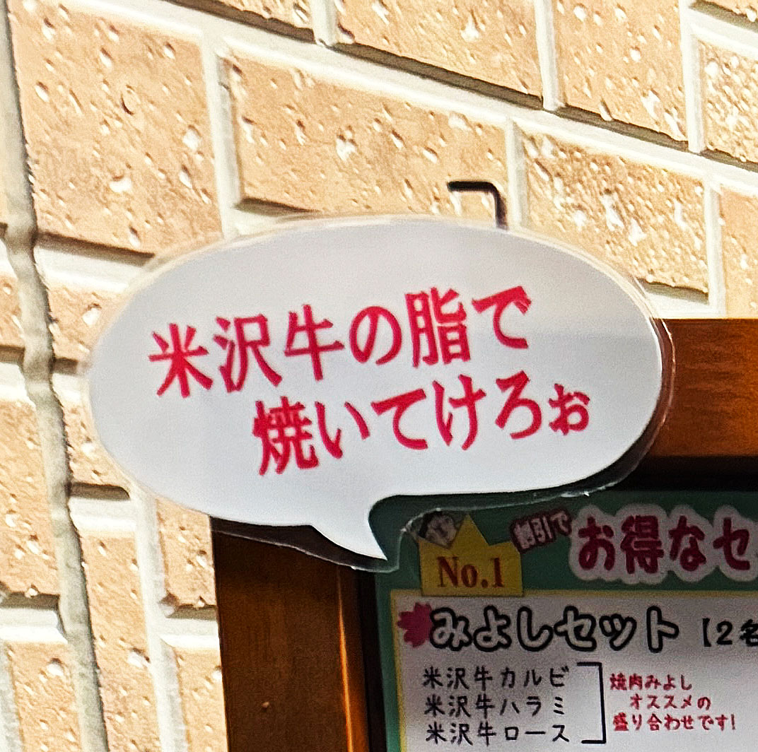 しかしながら、JR米沢駅前の「焼肉みよし」(山形県米沢市駅前3-2-23)ならば、一人焼肉を堂々と楽しめる。しかも米沢牛で一人焼肉が可能なのである。ファミリーからカップルまで、幅広い客層を受け入れてくれる「焼肉みよし」だが、一人客のために特別なセットを用意してくれているという。