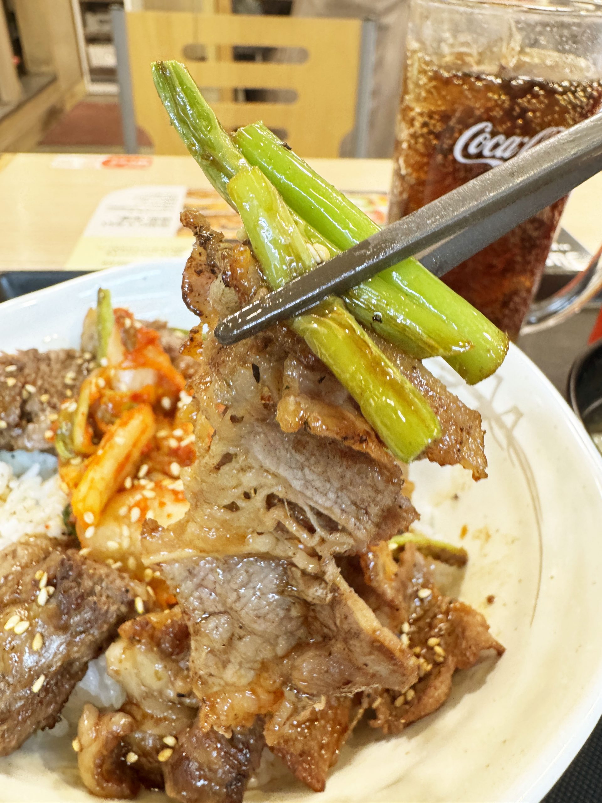 松屋の「カルビと特選ブリスケット肉の合い盛り丼」、とても良いから、お食べなさって。