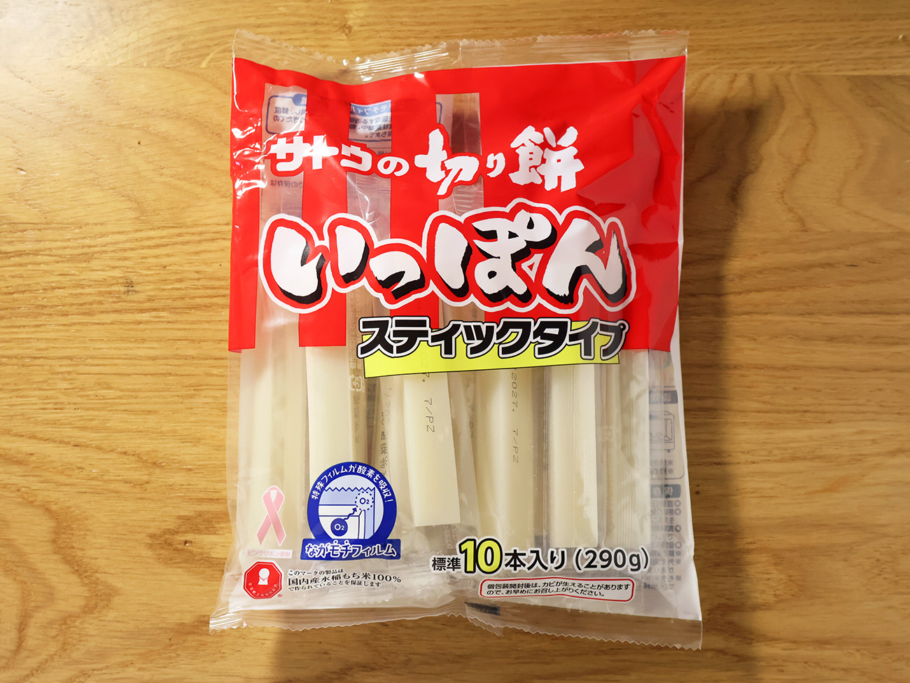 いまだかつて見たことない食べ物の姿ですが、「サトウの切り餅いっぽん」はすでにアブラをまとって表面テカテカ。いい感じに馴染んでそうです。