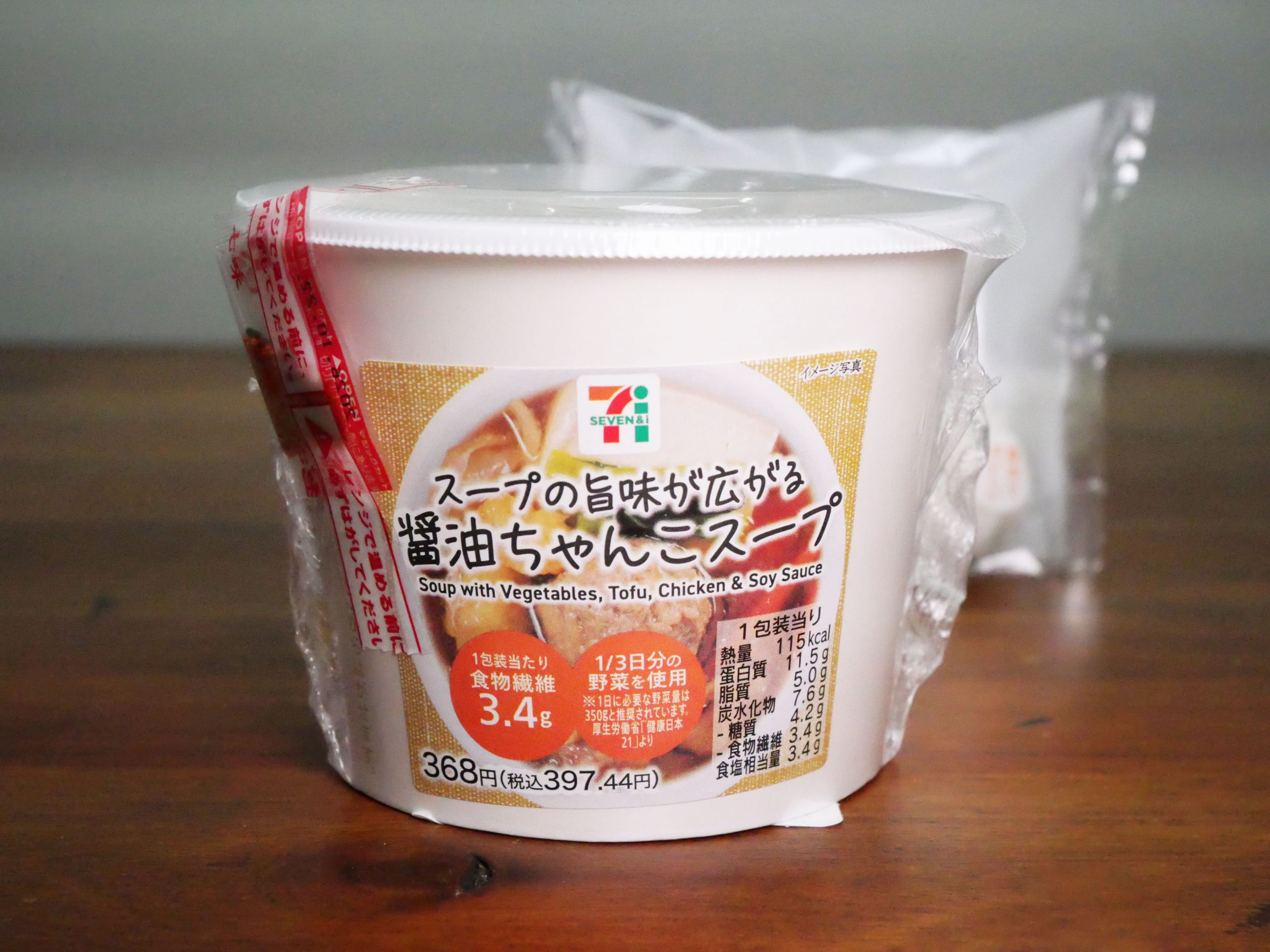 「とりあえずコンビニで低脂質でおいしいのやってみた この野菜沢山入ったスープを熱々に温めておにぎりも中に入れてちゃんこご飯にしたけどめちゃくちゃおいしいし満足度がめちゃくちゃ高い これで脂質が5.9 タンパク質が少し足りないからゆで卵とかお豆とかあるといいかも とりあえずおいしいし満足度高いから気になる人は是非」