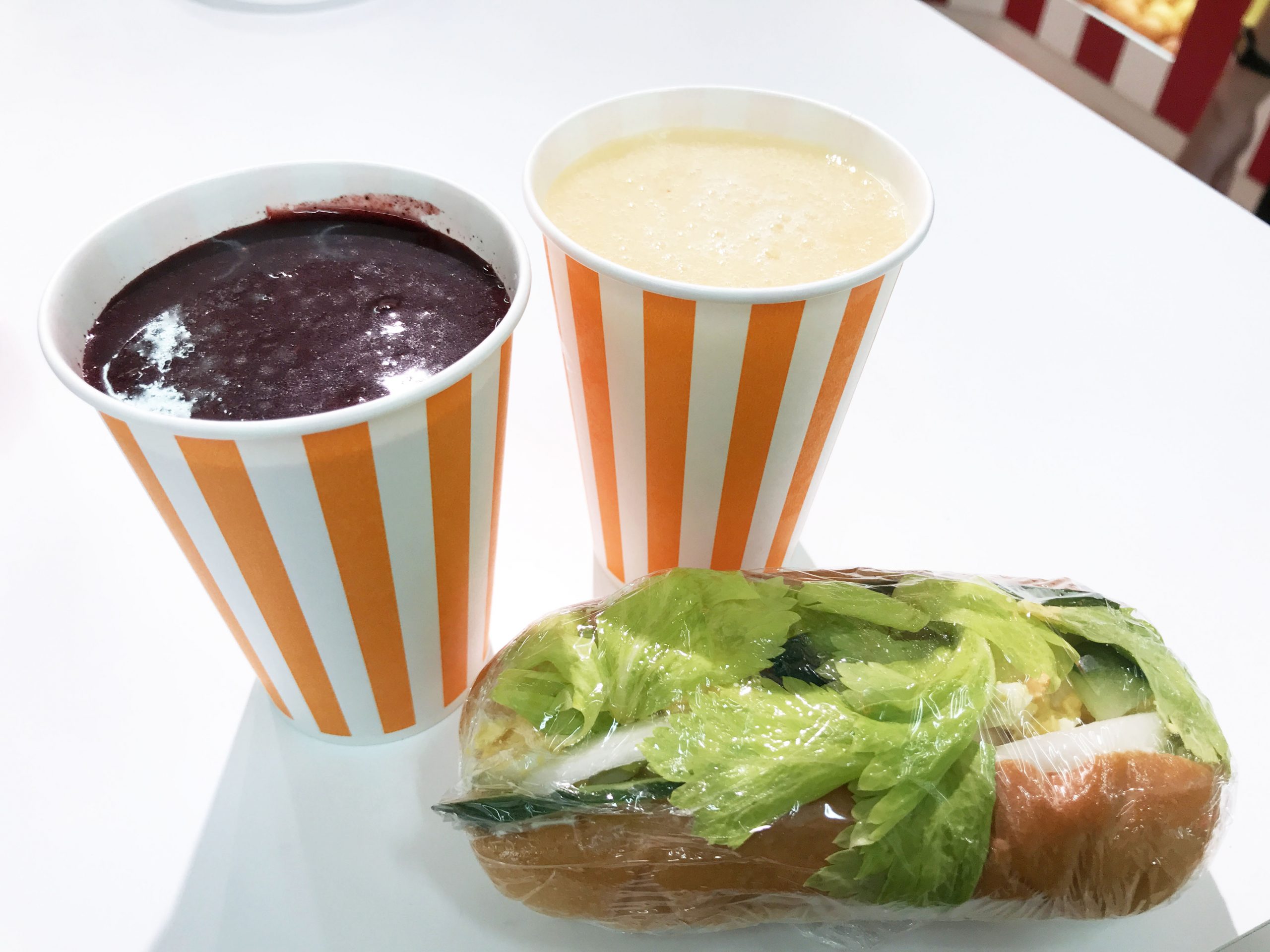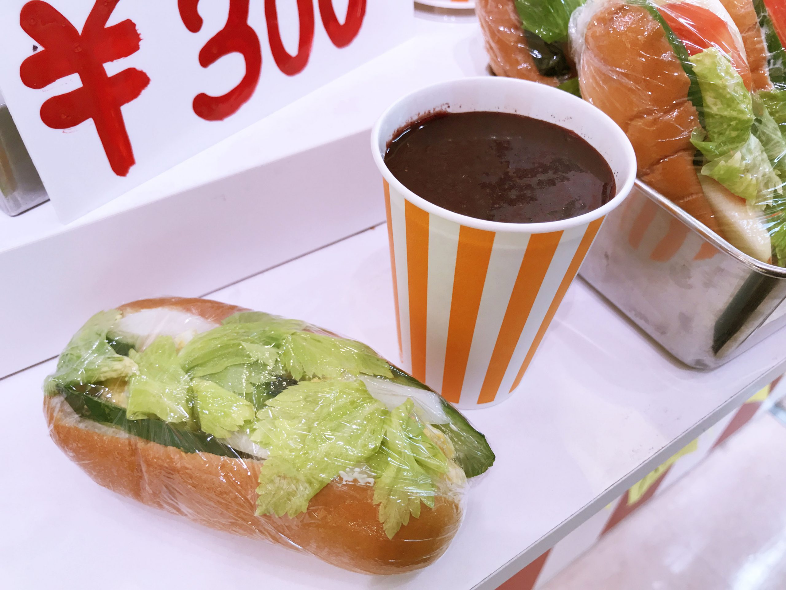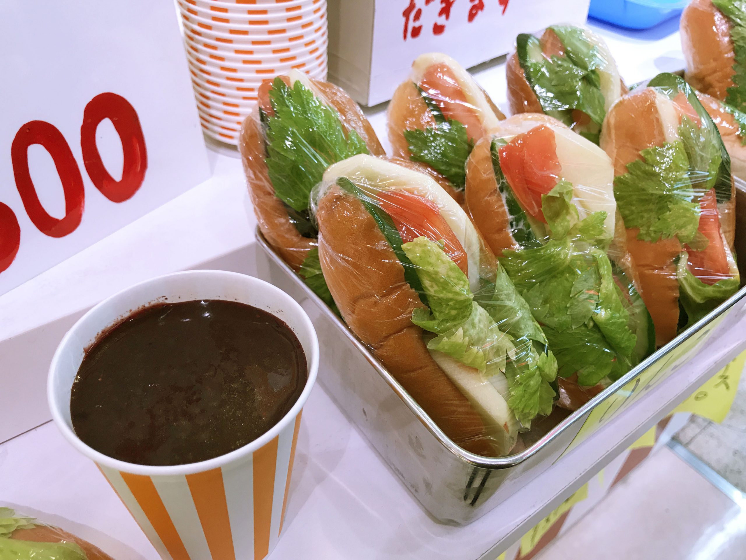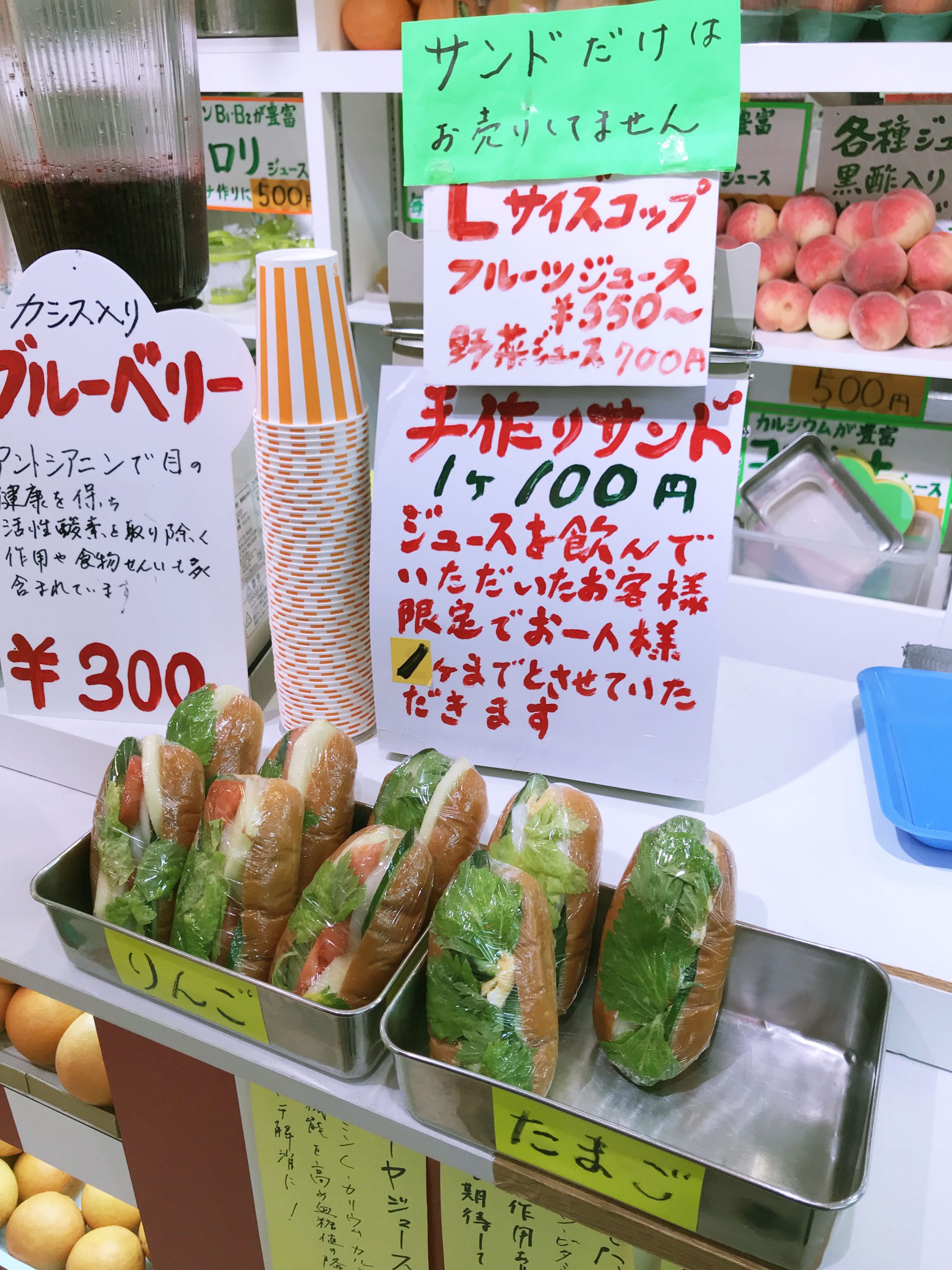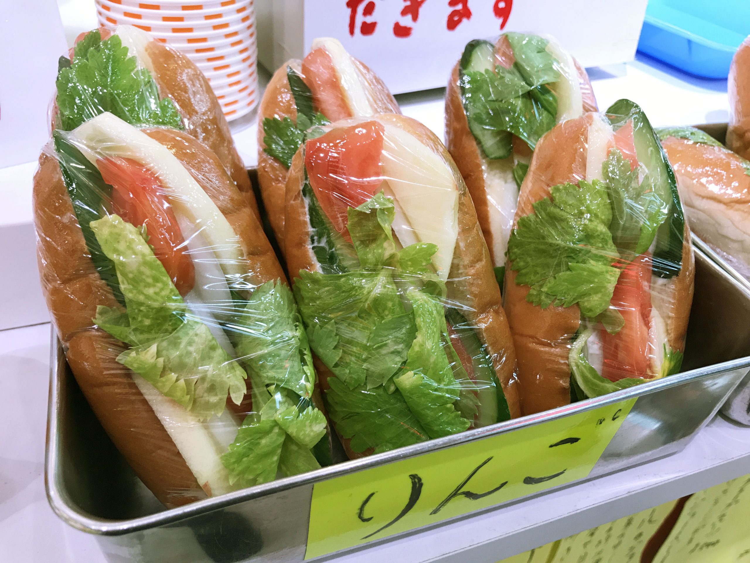 ジュースだけでなく、ベジタリアンのパンにも着目したい。なんと、野菜やチーズがサンドされたパンが1個100円で売られていたのである。これは完全にベジタリアンのおばちゃんの優しさによるものといえる。ジュースを飲んでくれるお客さんのための奉仕グルメだ。優しい、優しすぎる。