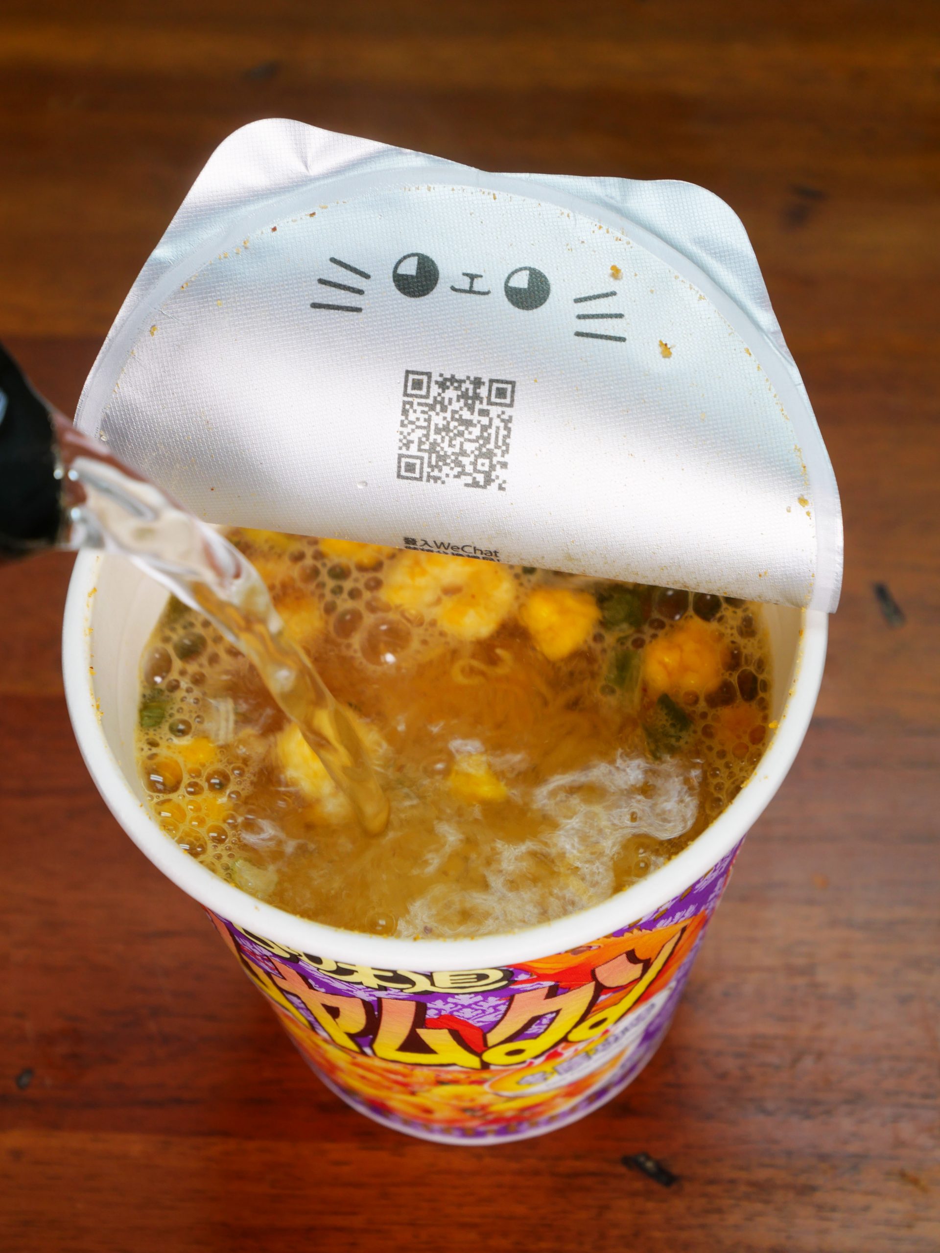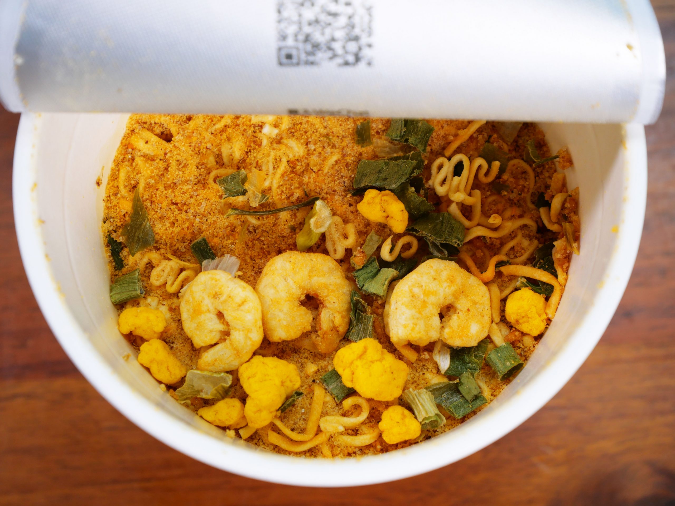 3分後、開封すると、トムヤムクンの薫りがより強くなっていました。