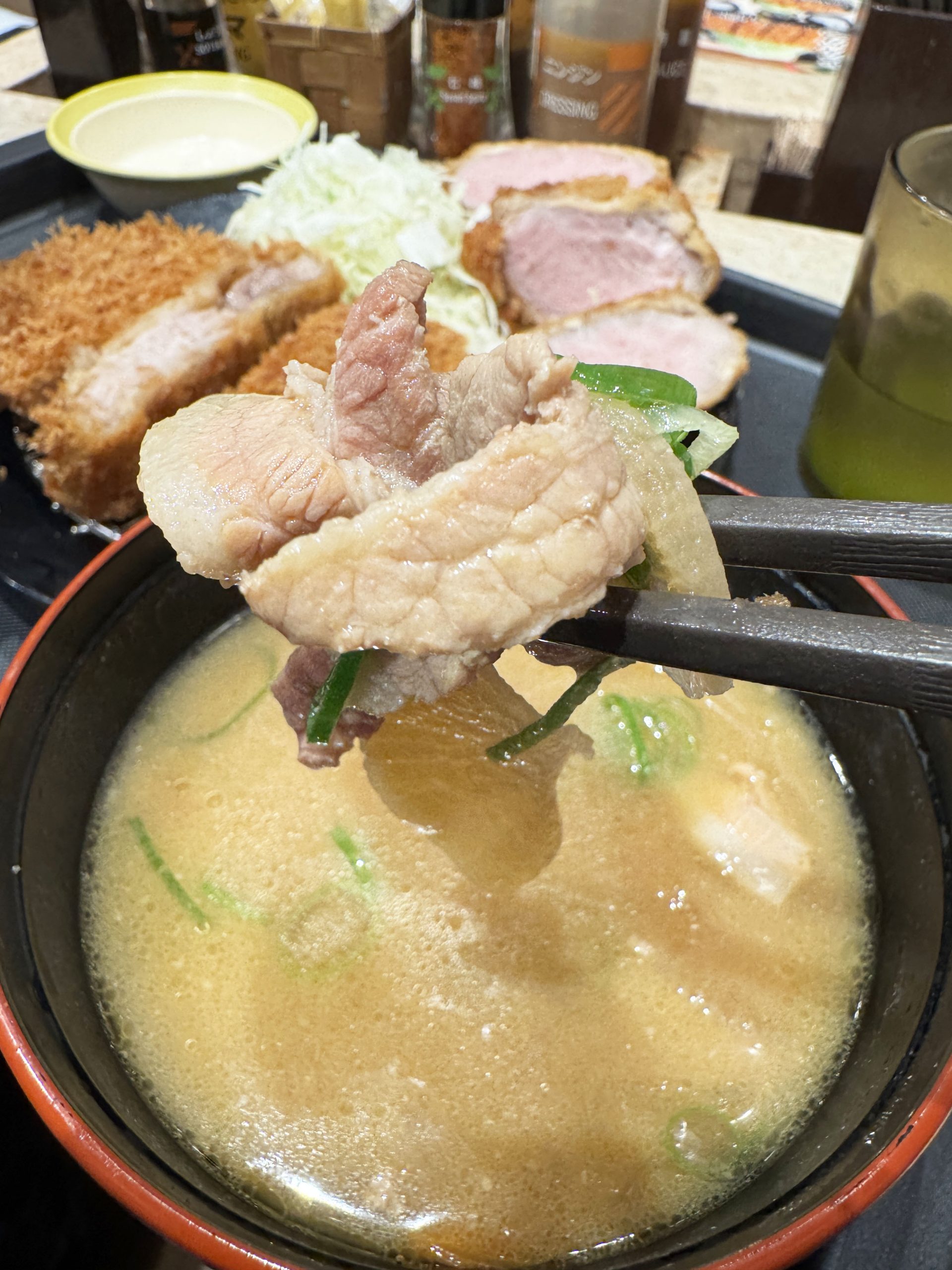 濃いめの豚汁も良い感じです! ソース色に染まったとんかつを、ガツーンとパワフルな豚汁でさらに引き締める。最高かもしれません。ごちそうさまでした!!