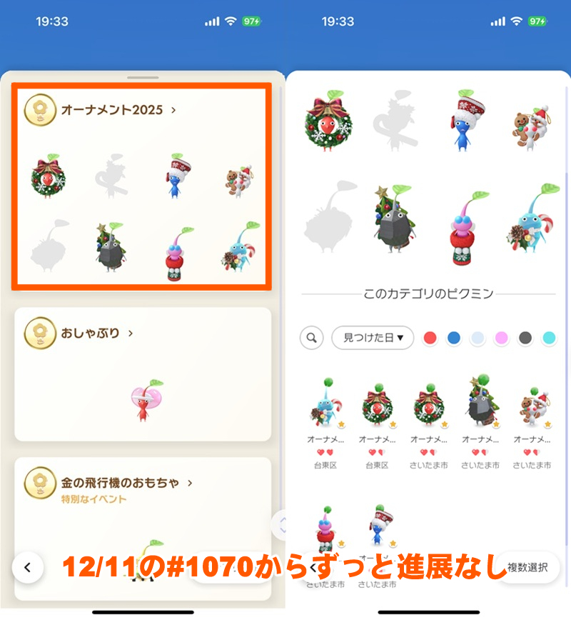 『ピクミン ブルーム』サンタに願いを!! ついにこの瞬間がやってきたオーナメント2025進捗リポート【プレイログ#1076】