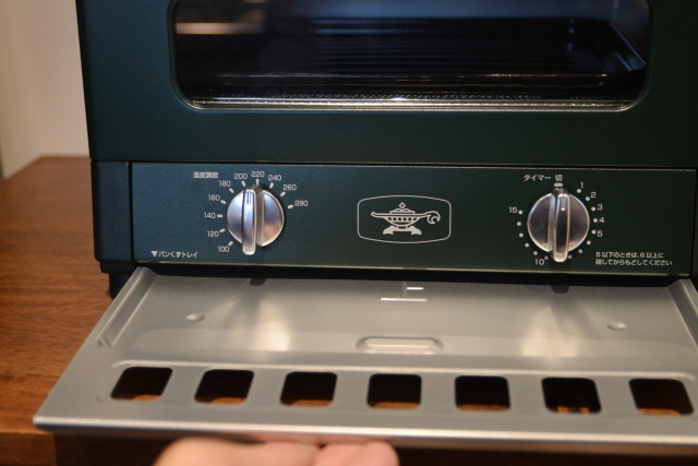 この、焼き網を持ち上げられる設計により、扉まわりに溜まりやすいパンくずも掃除しやすくなり、お手入れ性と衛生面が大幅に向上しました。なお本体下部には『パンくずトレイ』が付いており、掃除はきわめて簡単です。