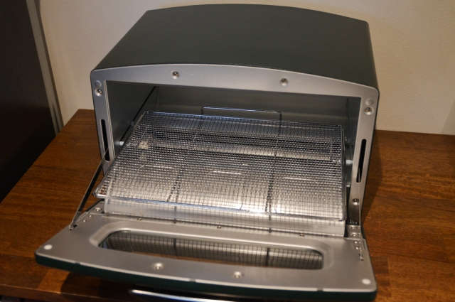 まずは、普通にトーストを焼いてみましょう。操作はシンプルで、温度を決めて(温度調節つまみを回す)タイマーつまみを回すと上下のヒーターで加熱が開始されます。代表的なメニューについては、調理時間の目安が本体側部に書かれていますので、たまにしか焼かないものでも大丈夫。