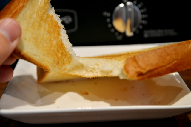 食べてみると、焼き加減も見事ですね。お手本のようなカリカリもちもちで、中身は適度にしっとりしてふんわり。高火力でスピーディーに焼ける性能により、内部の水分をある程度維持しながらカリッと焼けるメカニズム、これが『グラファイトヒータ』の実力ということでしょう。