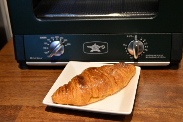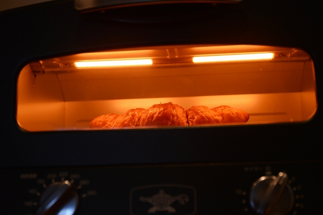 次はクロワッサン。説明書によると、クロワッサンの調理は「1個の場合100℃で1~3分」とのこと。通常サイズのクロワッサンだったので試しに2分で焼いてみました。