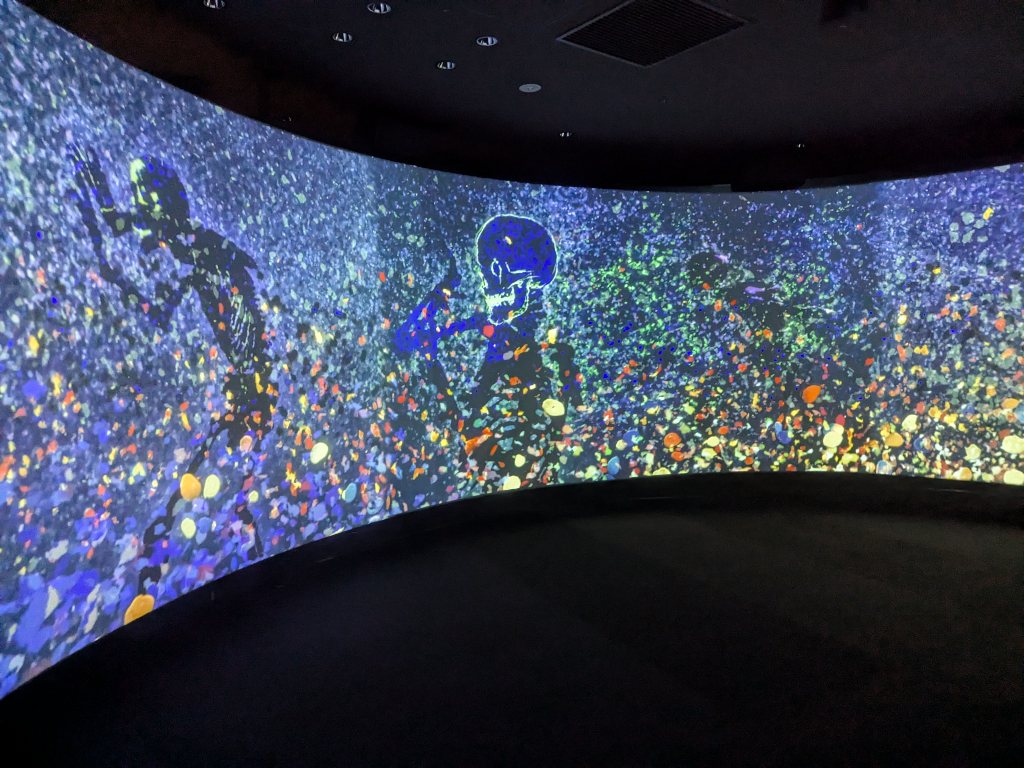 そしてイマーシブな映像の中にも、骸骨たちが登場。ジョニー・デップのモノローグも流れていて、彼の心情が伝わってきます。「絵を描き始めた頃は逃げ道だった」「頭の中から逃げ出す必要があった」「僕は失敗というものが大好きなんだ」「スリリングでワクワクする」「シンプルに生きること。それはとてつもなく贅沢なんだ」といった言葉が心に残りました。失敗が大好きとのことで、魔性の女性、アンバー・ハードとの一件ももう吹っ切れていそうです。
