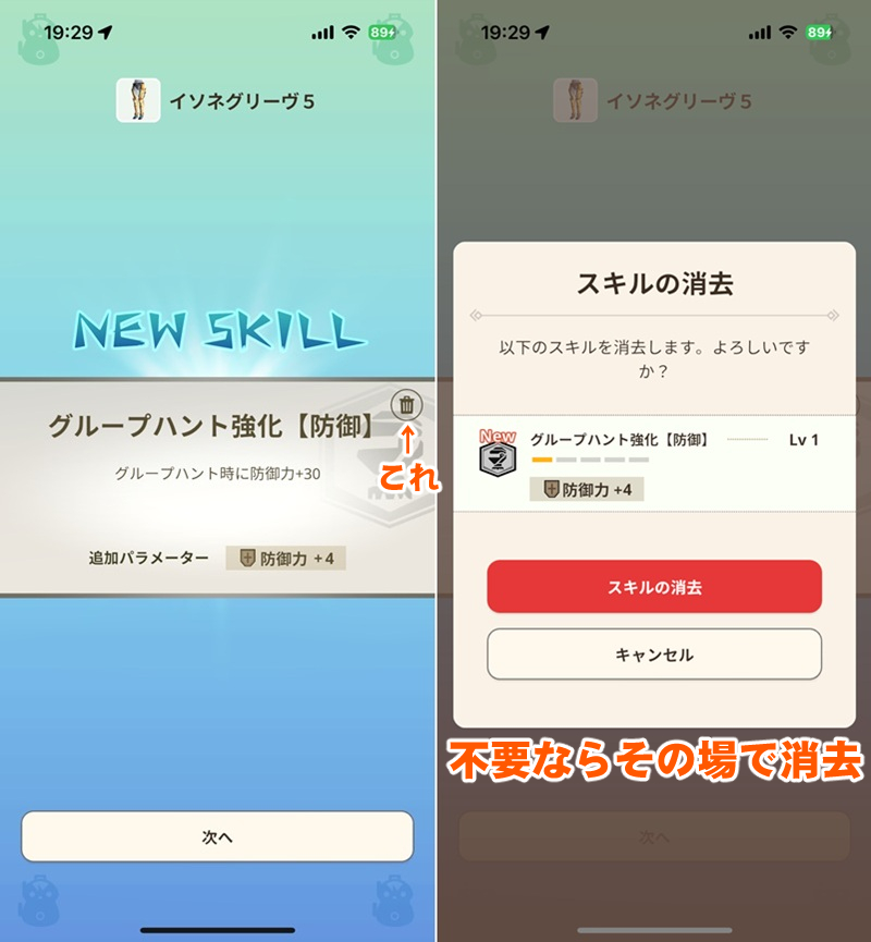漂移錬成を終え付与されたスキルが必要ない場合、その場で削消去できるのがとても便利。