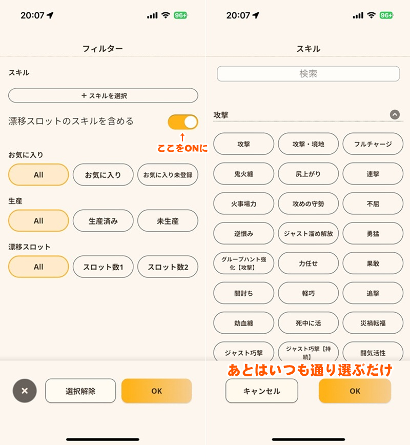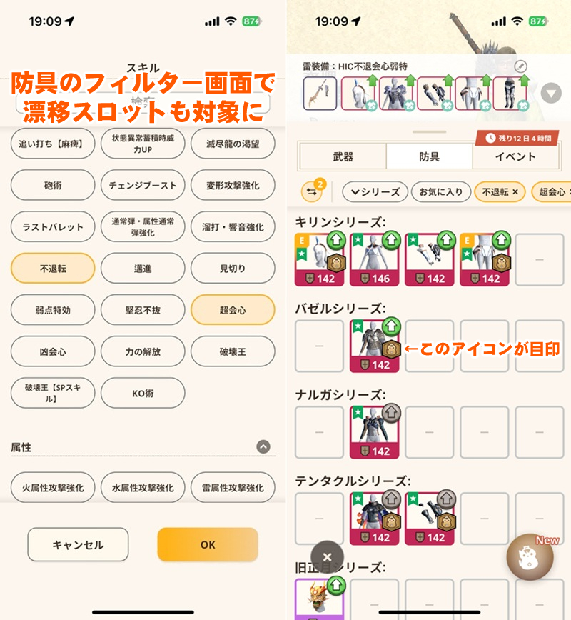 これまで「たしかこの防具にあのスキルが」と手探りで確認していた面倒なプロセスからいっきに解消。