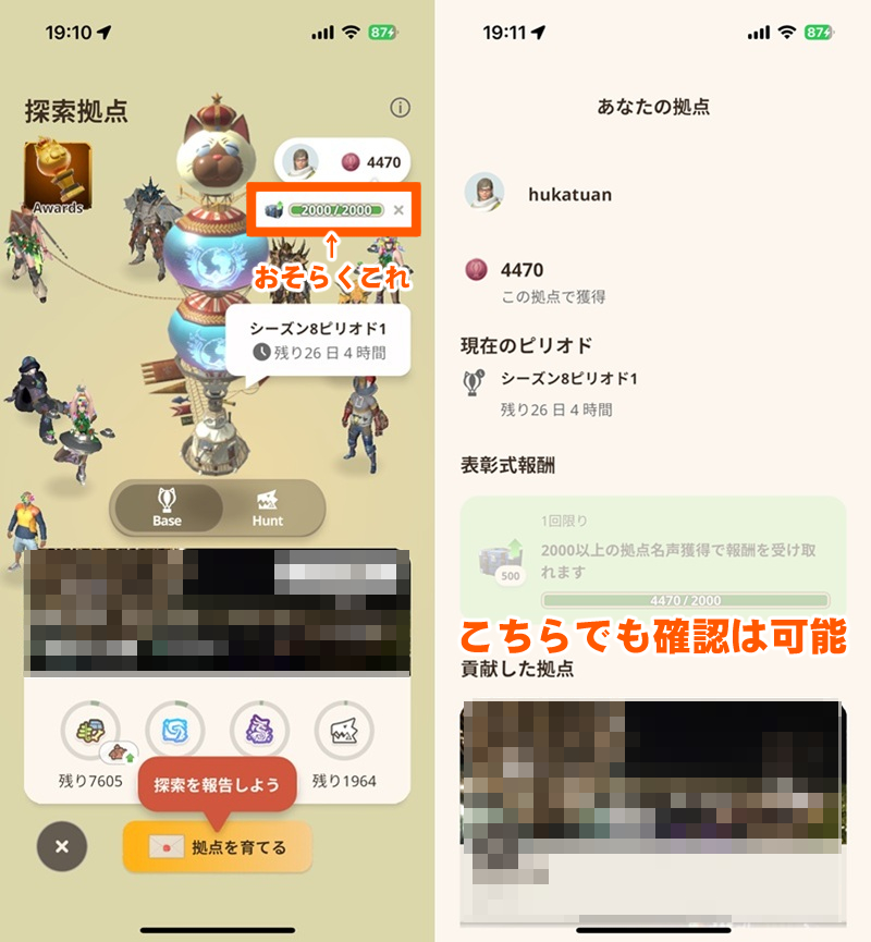 ・探索拠点画面にて1日1回表彰式報酬の達成状況が表示されるようになった。