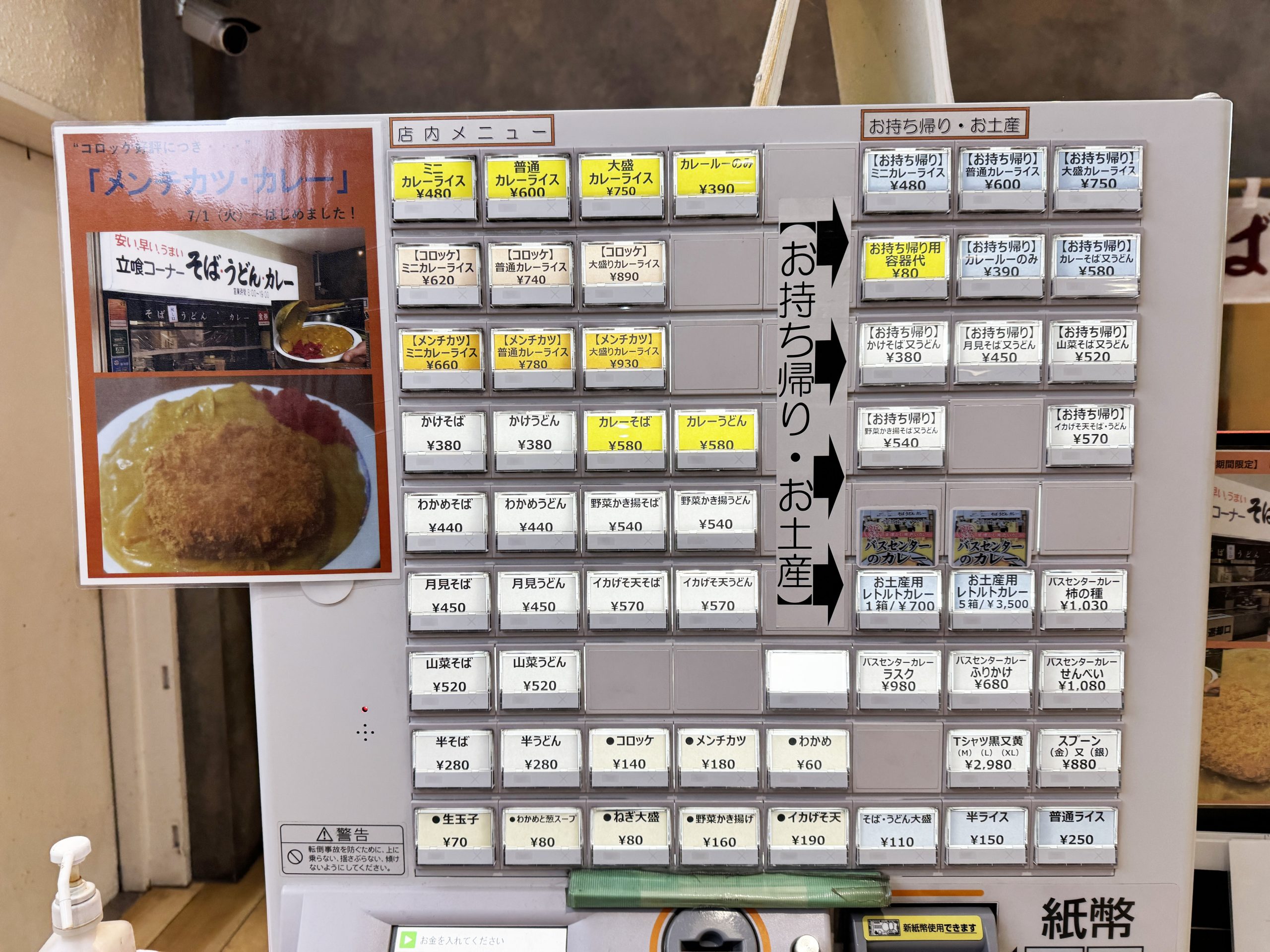 万代バスセンターのカレーよりうまい万代バスセンターのメニュー